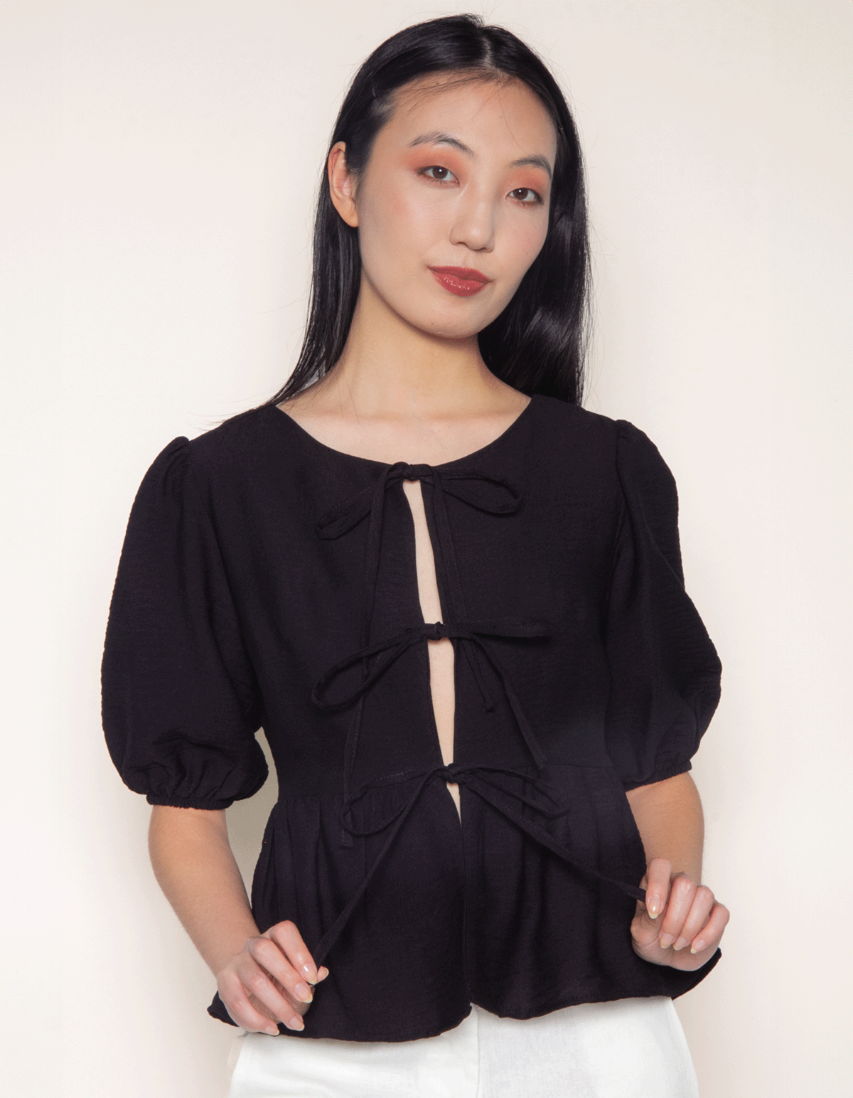 Esta peça exala charme e estilo. dentre os principais destaques estão suas mangas puff ou balão, elástico no punho e fechamento em laços, esse conjunto de detallhes conferem um toque de sofisticação e feminilidade. com um corte em peplum na cintura ela valoriza a silhueta feminina, proporcionando um visual elegante e moderno. seu design versátil em cores básicas a torna uma peça indispensável no guarda-roupa, sendo facilmente combinada com diversas opções de calças, como calça jeans ou calças de alfaiataria. ideal para diversas ocasiões, desde um passeio descontraído até um evento mais formal, a bata de laço é perfeita para expressar sua personalidade e estilo único. complete seu look com acessórios delicados e uma bolsa elegante para um visual completo e sofisticado.