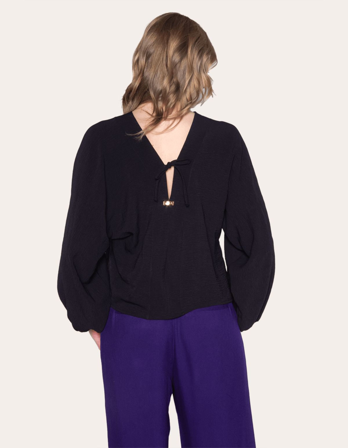 Bata de modelagem fluída e super comfortável, possui manga longa com decote v e detalhe para amarrar nas costas. as batas são fáceis de combinar e podem ser usadas para montar desde looks para o clube até para eventos mais chiques.