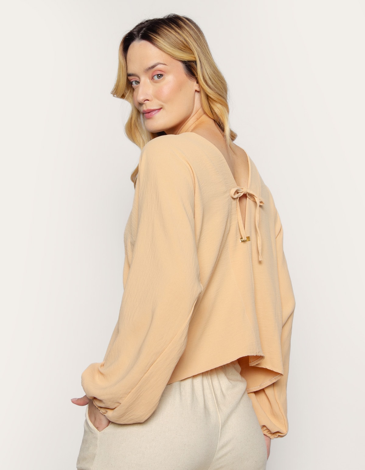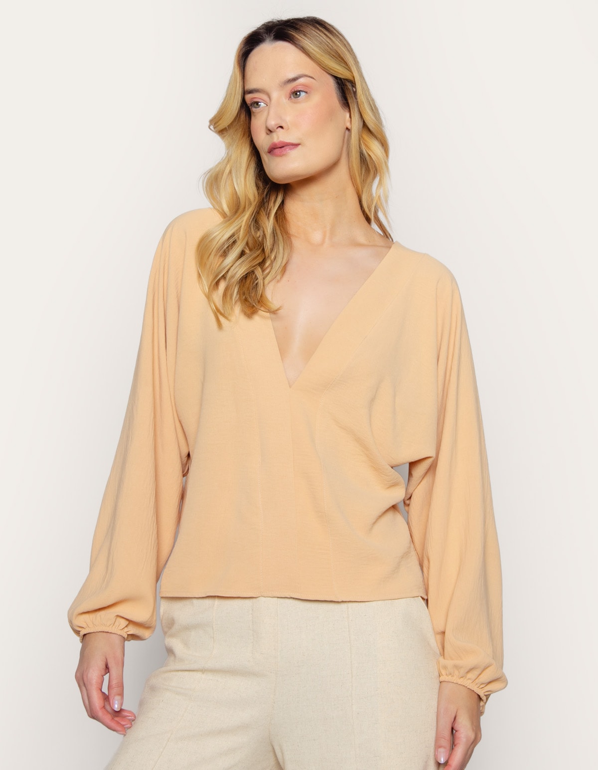 Bata de modelagem fluída e super comfortável, possui manga longa com decote v e detalhe para amarrar nas costas. as batas são fáceis de combinar e podem ser usadas para montar desde looks para o clube até para eventos mais chiques.