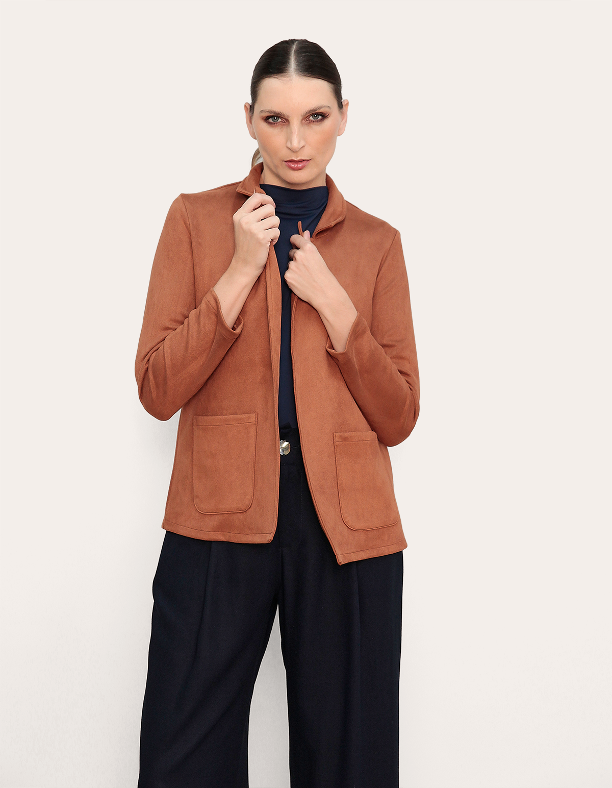 O Soft Elegance é o blazer perfeito para quem busca versatilidade e sofisticação em uma única peça. Confeccionado em suede com textura sutil e toque macio, ele traz um design atemporal que eleva qualquer produção, do trabalho ao happy hour. Seus dois bolsos frontais adicionam funcionalidade sem perder a elegância, enquanto a modelagem aberta oferece conforto e estilo para composições modernas e refinadas.