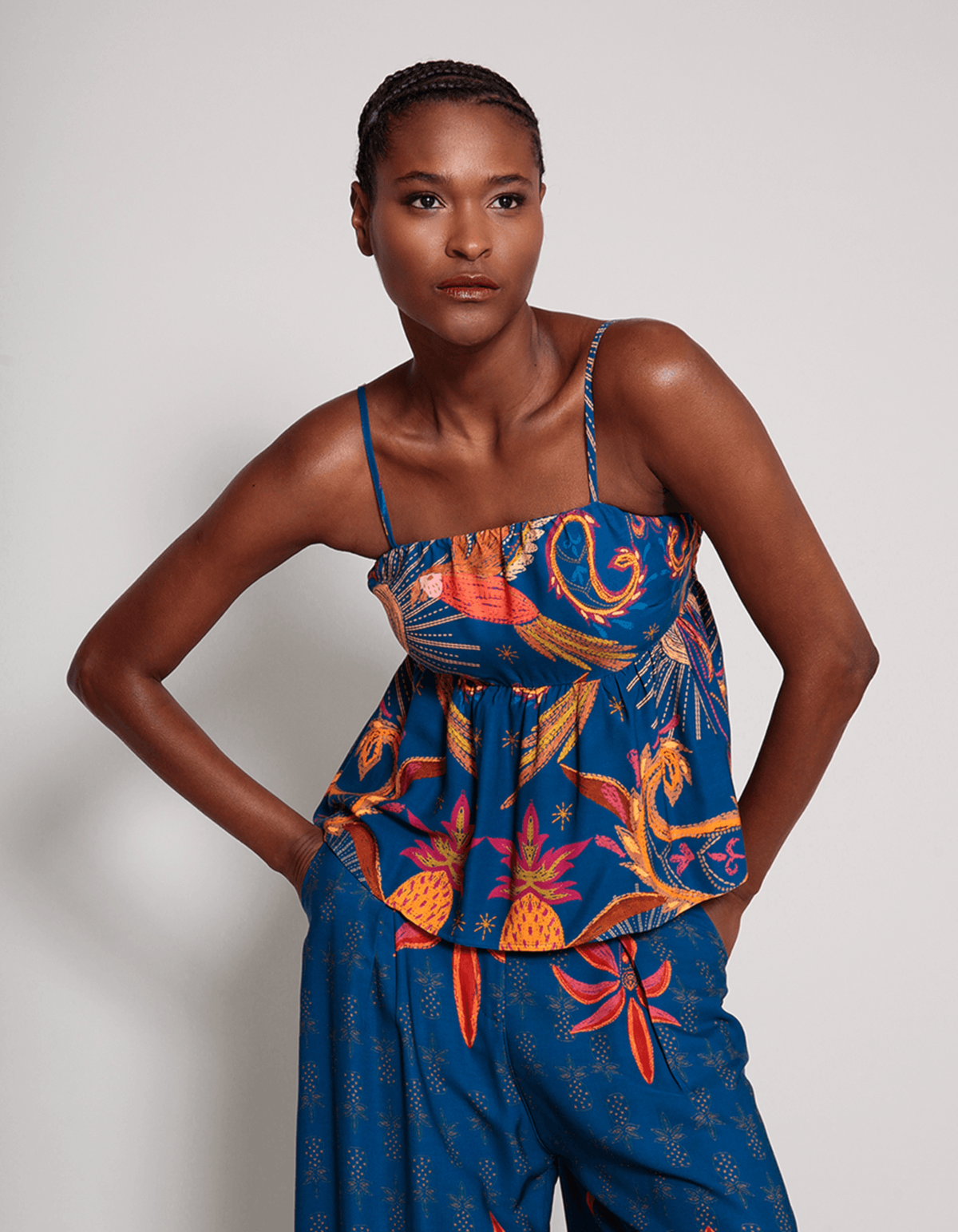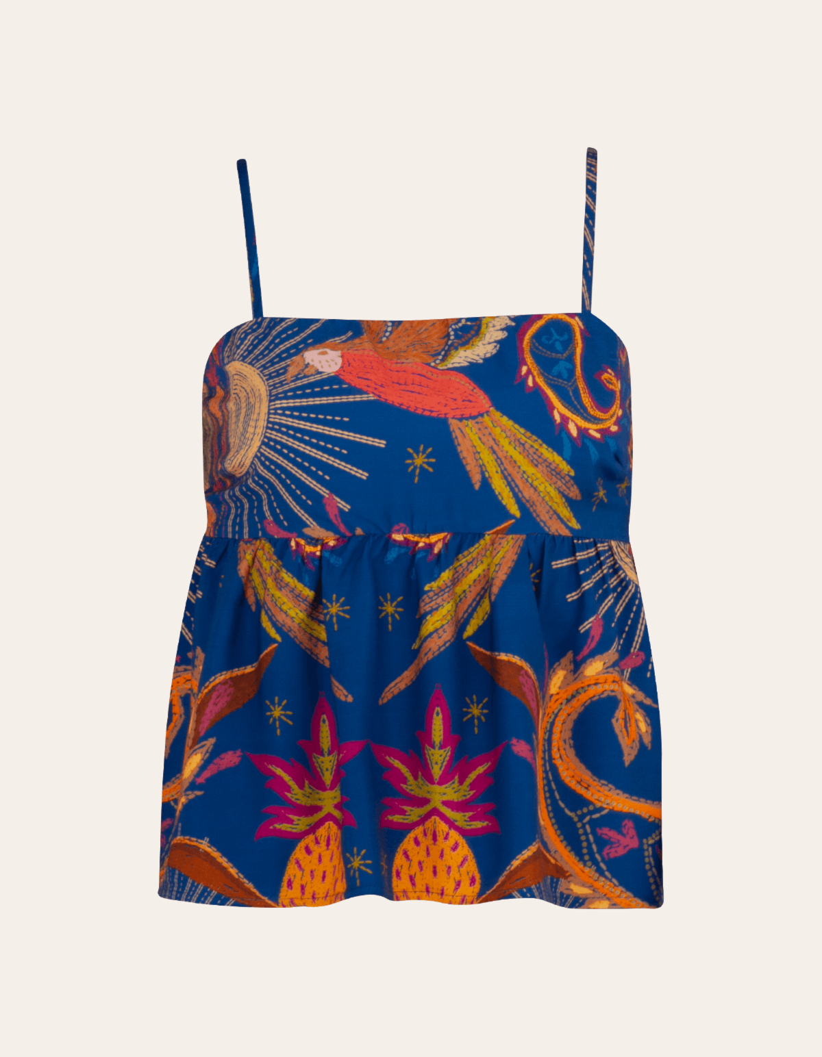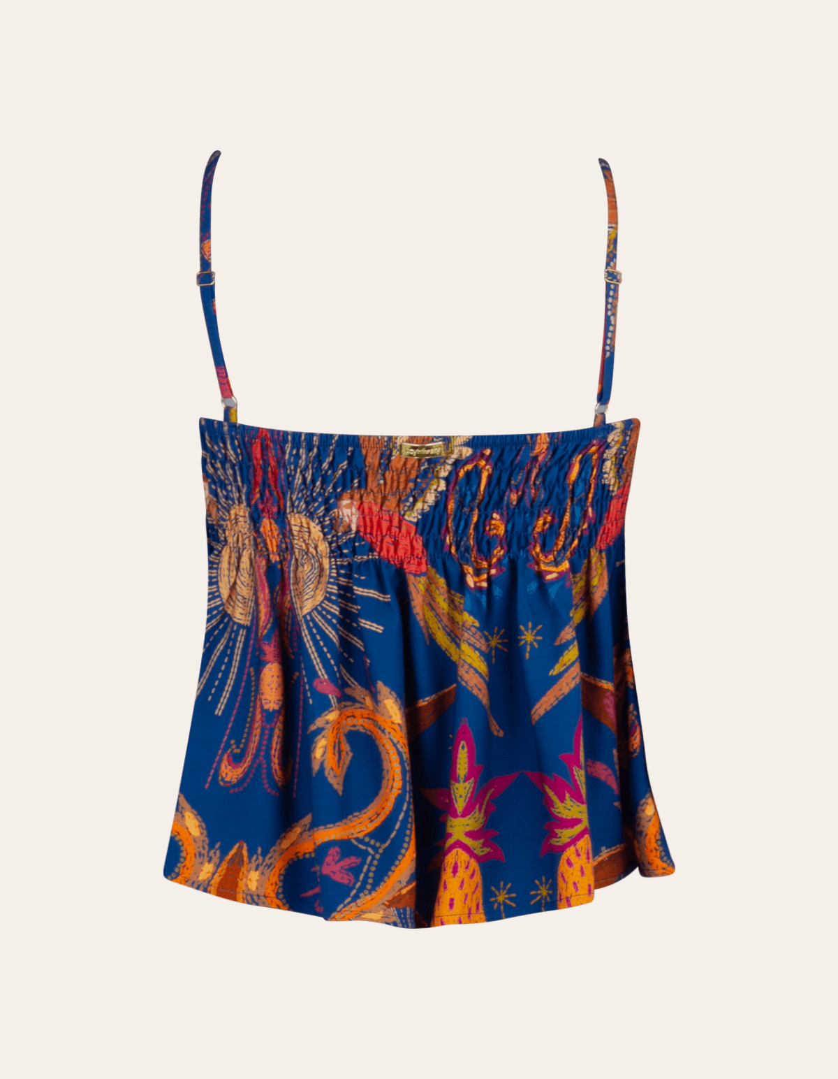 Blusa cropped com alcinha fina e regulador, estilo bata (até a altura da cintura ela é justa, e depois ela abre formando um pequeno rodado). possui lastex na parte superior das costas. se a temperatura continuar baixando, vale a pena colocar um blazer ou casaco por cima e pronto! você estará confortável e com muito estilo.
