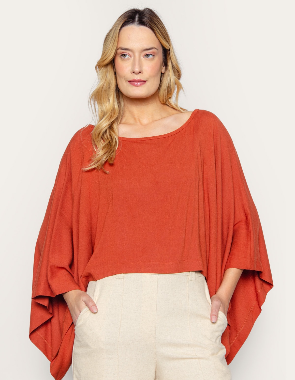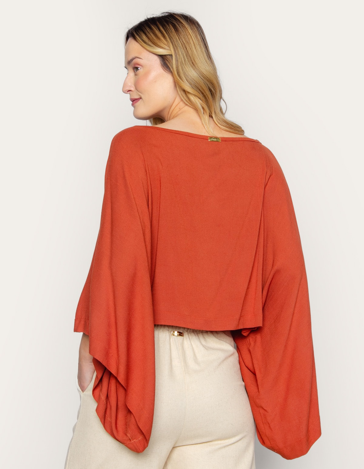 A blusa ampla é uma peça perfeita para quem busca conforto e elegância. com modelagem solta ela possui um decote canoa e comprimento no quadril, proporcionando um visual mais descolado. combine-a com calças justas para um look mais equilibrado e sensual, adicionando um saltinho para uma pegada mais refinada ou tênis para um visual descontraído. para dar um toque extra, aposte em colares mais longos, que ajudam a alongar a silhueta e complementar o visual.