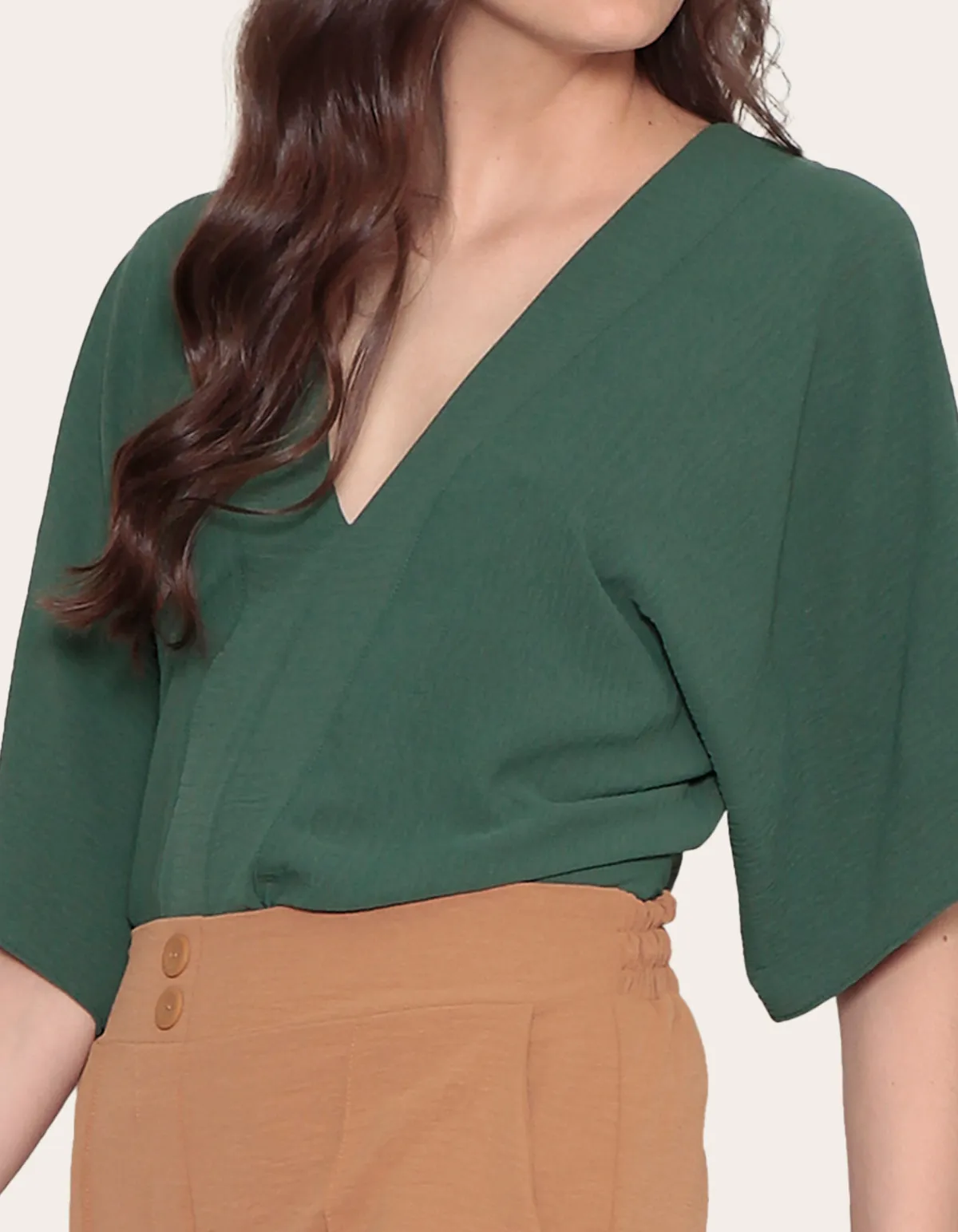 Apresentamos uma blusa de manga curta no estilo morcego, com uma modelagem ampla que proporciona conforto e estilo. essa peça traz uma abordagem moderna e descontraída para o seu guarda-roupa. a manga curta morcego acrescenta um toque de elegância e fluidez ao visual, enquanto o decote em v valoriza o colo de maneira sutil e sofisticada. além disso, a amarração na parte de trás adiciona um detalhe charmoso, criando um efeito único ao ajustar a blusa de acordo com sua preferência. perfeita para criar looks versáteis, essa blusa é uma escolha elegante e contemporânea para diversas ocasiões.