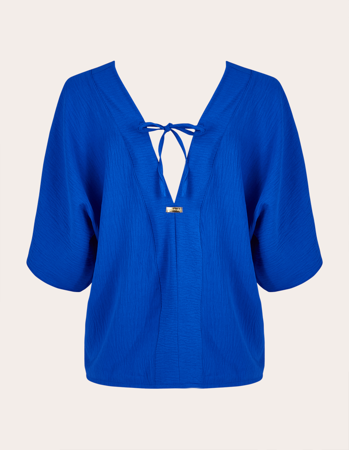Apresentamos uma blusa de manga curta no estilo morcego, com uma modelagem ampla que proporciona conforto e estilo. essa peça traz uma abordagem moderna e descontraída para o seu guarda-roupa. a manga curta morcego acrescenta um toque de elegância e fluidez ao visual, enquanto o decote em v valoriza o colo de maneira sutil e sofisticada. além disso, a amarração na parte de trás adiciona um detalhe charmoso, criando um efeito único ao ajustar a blusa de acordo com sua preferência. perfeita para criar looks versáteis, essa blusa é uma escolha elegante e contemporânea para diversas ocasiões.