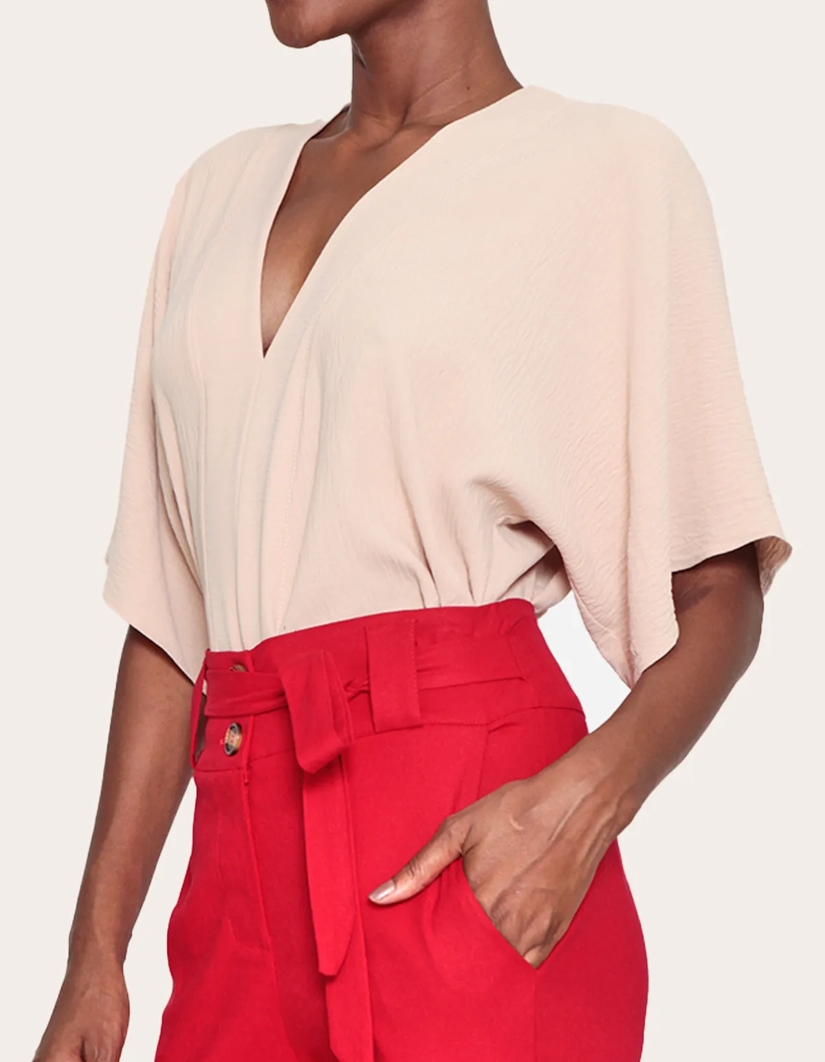Apresentamos uma blusa de manga curta no estilo morcego, com uma modelagem ampla que proporciona conforto e estilo. essa peça traz uma abordagem moderna e descontraída para o seu guarda-roupa. a manga curta morcego acrescenta um toque de elegância e fluidez ao visual, enquanto o decote em v valoriza o colo de maneira sutil e sofisticada. além disso, a amarração na parte de trás adiciona um detalhe charmoso, criando um efeito único ao ajustar a blusa de acordo com sua preferência. perfeita para criar looks versáteis, essa blusa é uma escolha elegante e contemporânea para diversas ocasiões.