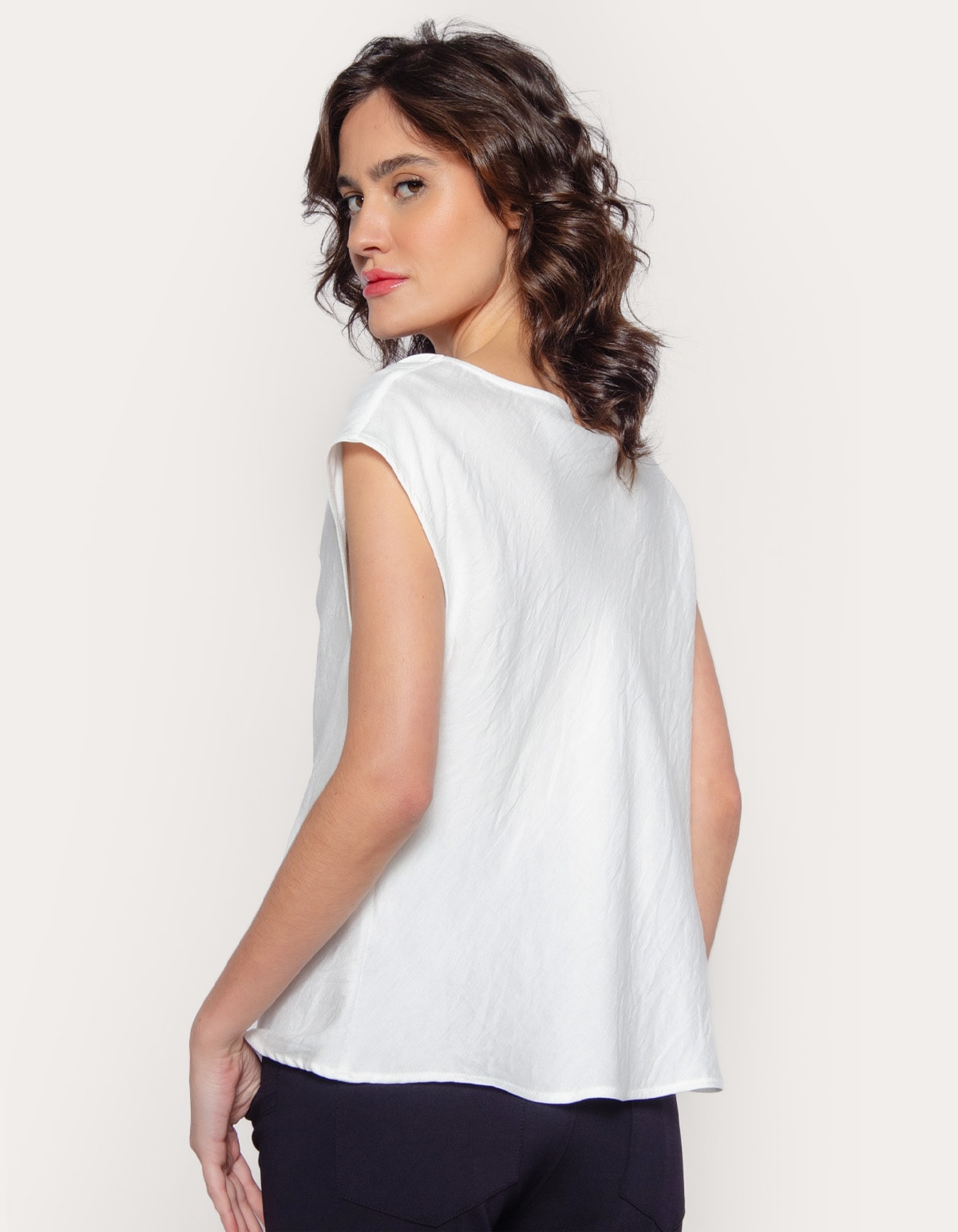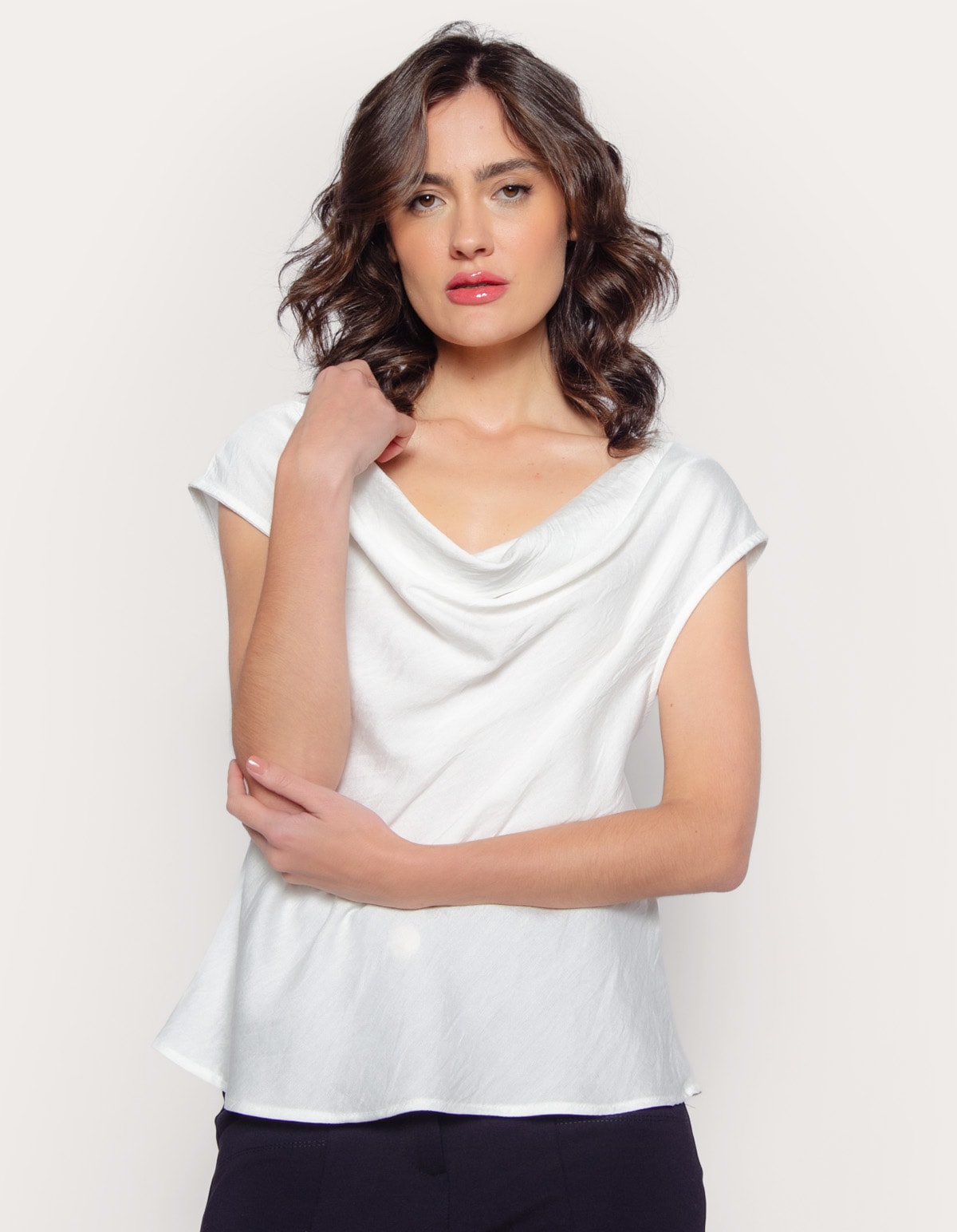Blusa manga curta decote drapeado, com design sofisticado e moderno, ideal para quem busca estilo e versatilidade. Possui modelagem ajustada, manga curta e decote drapeado que confere um toque elegante e delicado à peça. Confeccionada em tecido leve e de alta qualidade, oferece conforto e caimento impecável. Perfeita para compor looks casuais ou formais, combinando facilmente com calças, saias ou shorts.