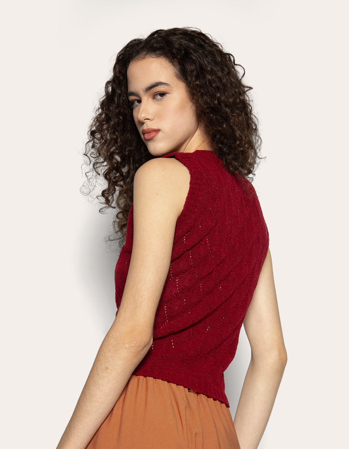 Blusa cavada tricot ponto vazado. Esta blusa é uma peça delicada e cheia de estilo, ideal para quem busca uma combinação de textura e elegância em seus looks.