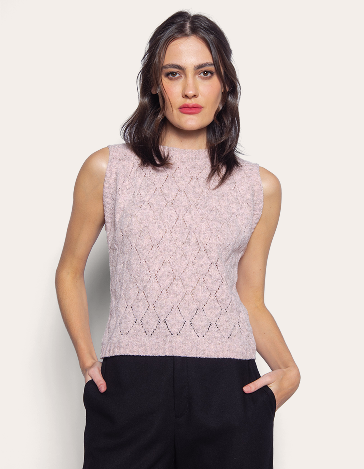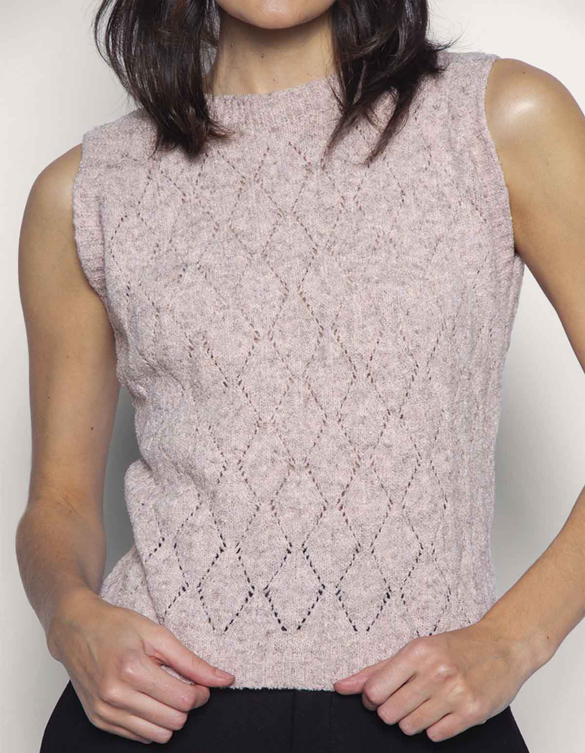 Blusa cavada tricot ponto vazado. Esta blusa é uma peça delicada e cheia de estilo, ideal para quem busca uma combinação de textura e elegância em seus looks.