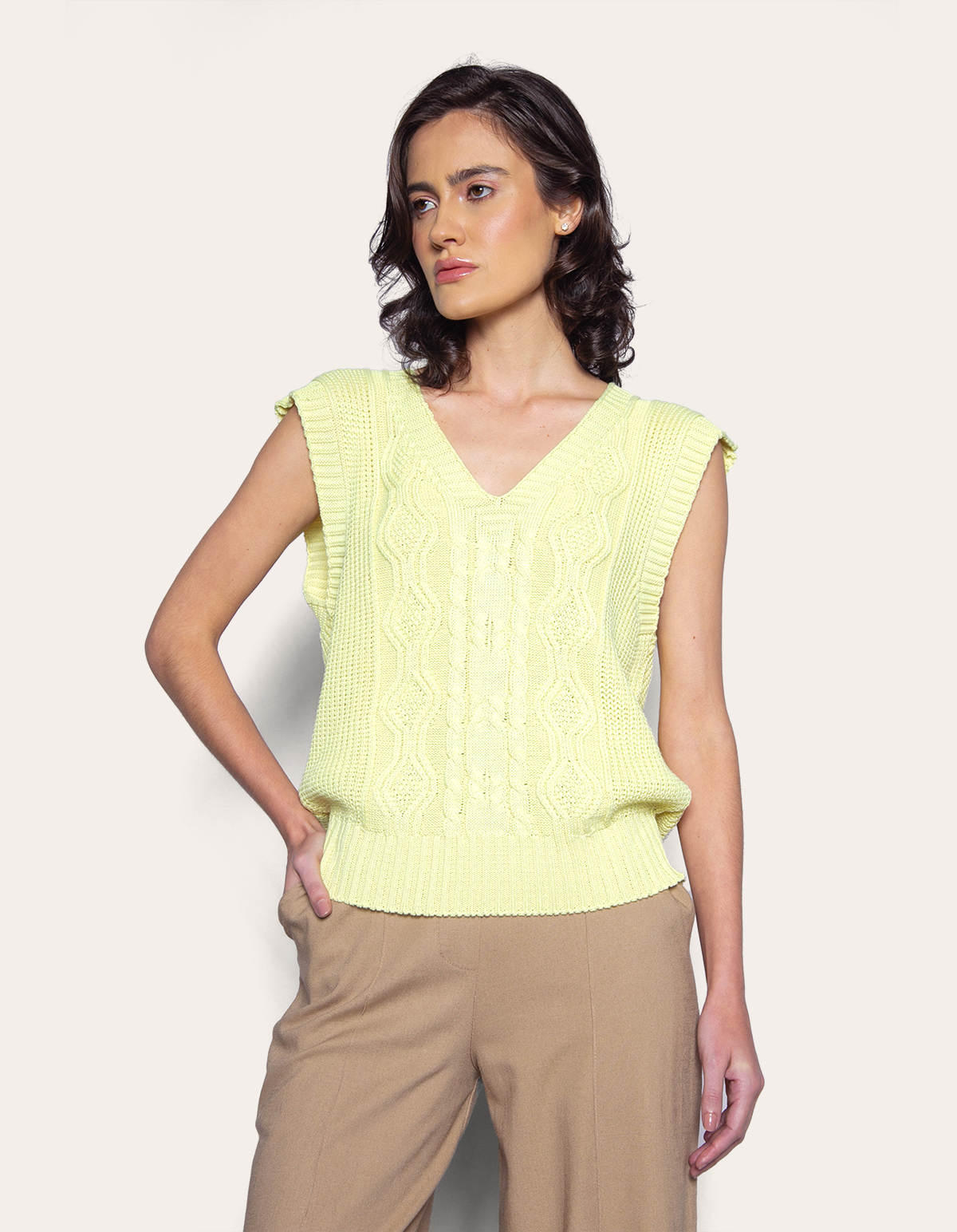 Blusa cavada tricot decote v