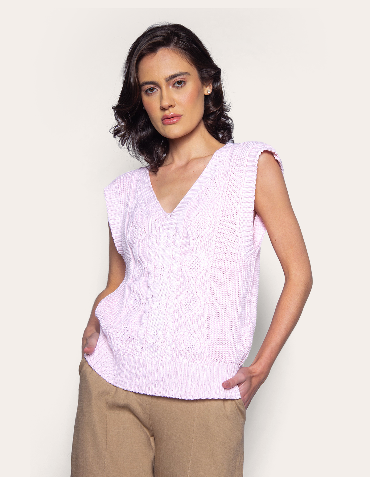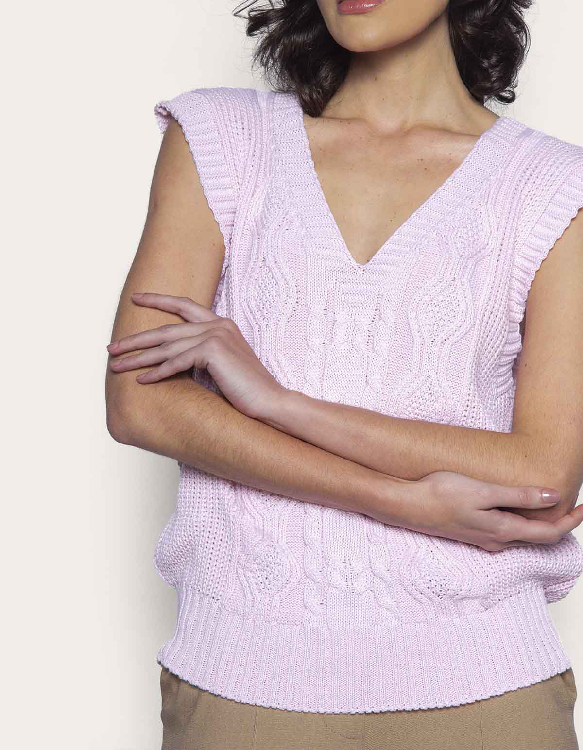 Blusa cavada tricot decote v