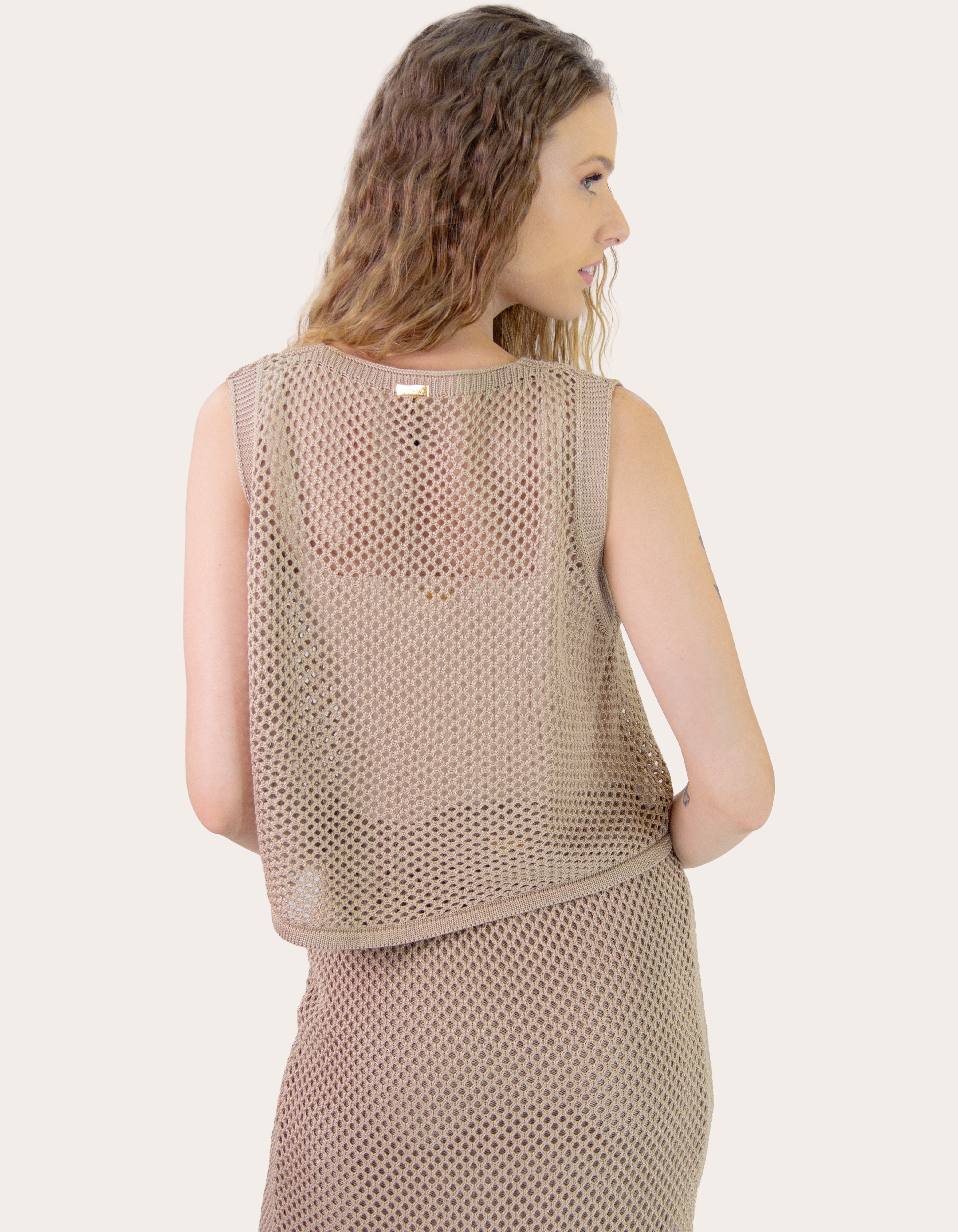 Blusa tricot em tela, cavada e decote v. ideal para usar com calça ou short-saia de alfaiataria. para um look casual e cheio de estilo.