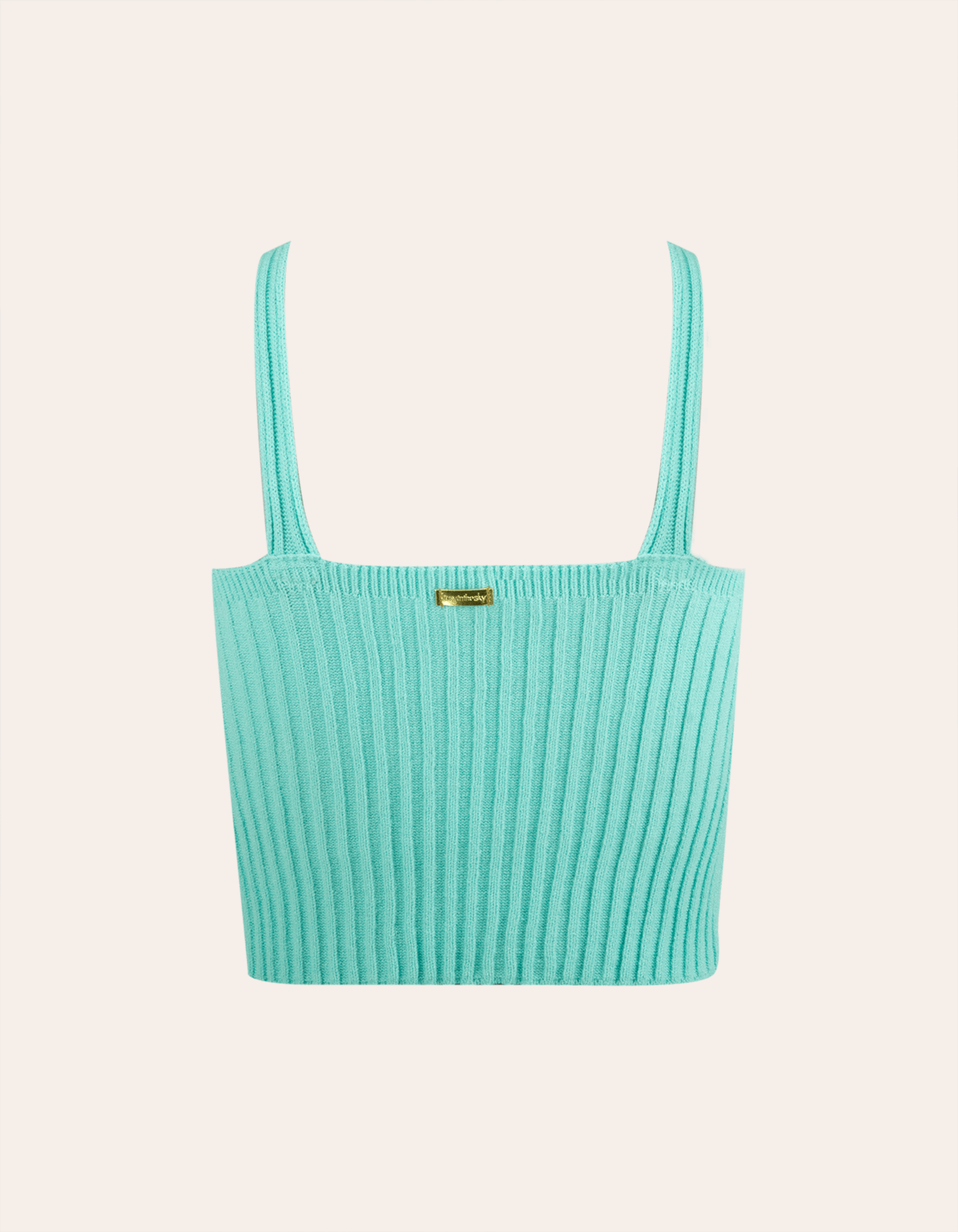 Blusa cropped alcinha confeccionado em tricot canelado. uma ótima opção para usar com calças e saias cintura alta mantendo o equilíbrio e para fazer composições mais delicadas e cool.