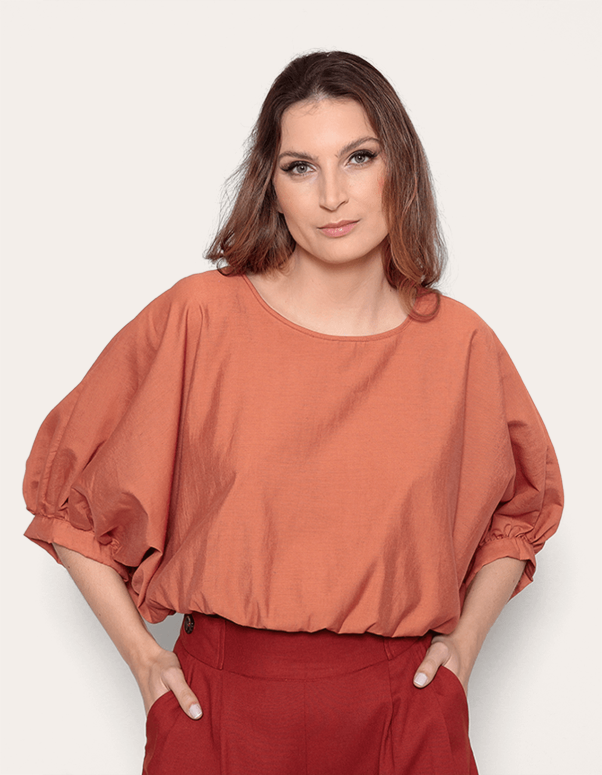 Blusa modelo cropped decote redondo manga morcego, elástico na barra. a blusa tem design delicado e extremamente feminino, oferece uma proposta hi-lo combinada com jeans lavados e destroyed, ou, uma atmosfera sofisticada combinada com jeans escuros e alfaiatarias. monte o look de acordo com a ocasião e arrase.