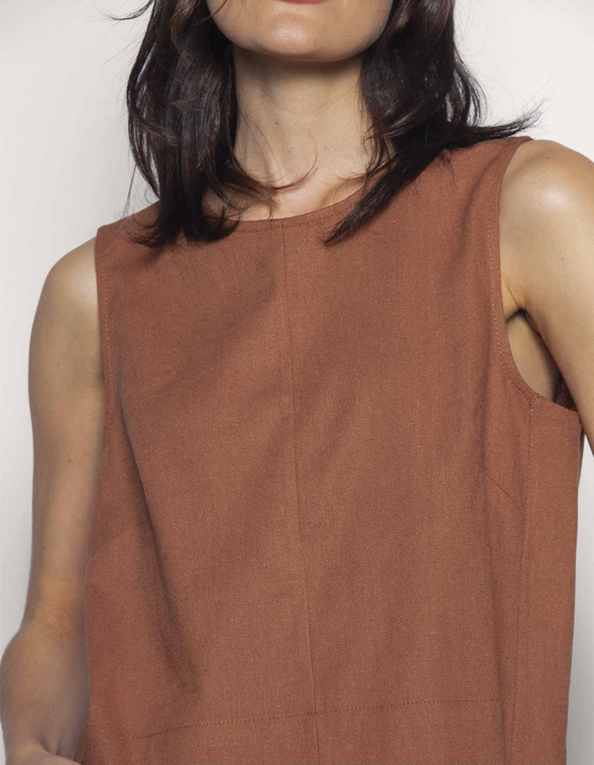 Para as cores azul escuro, marrom: 85% Viscose 12% Linho 3% Elastano