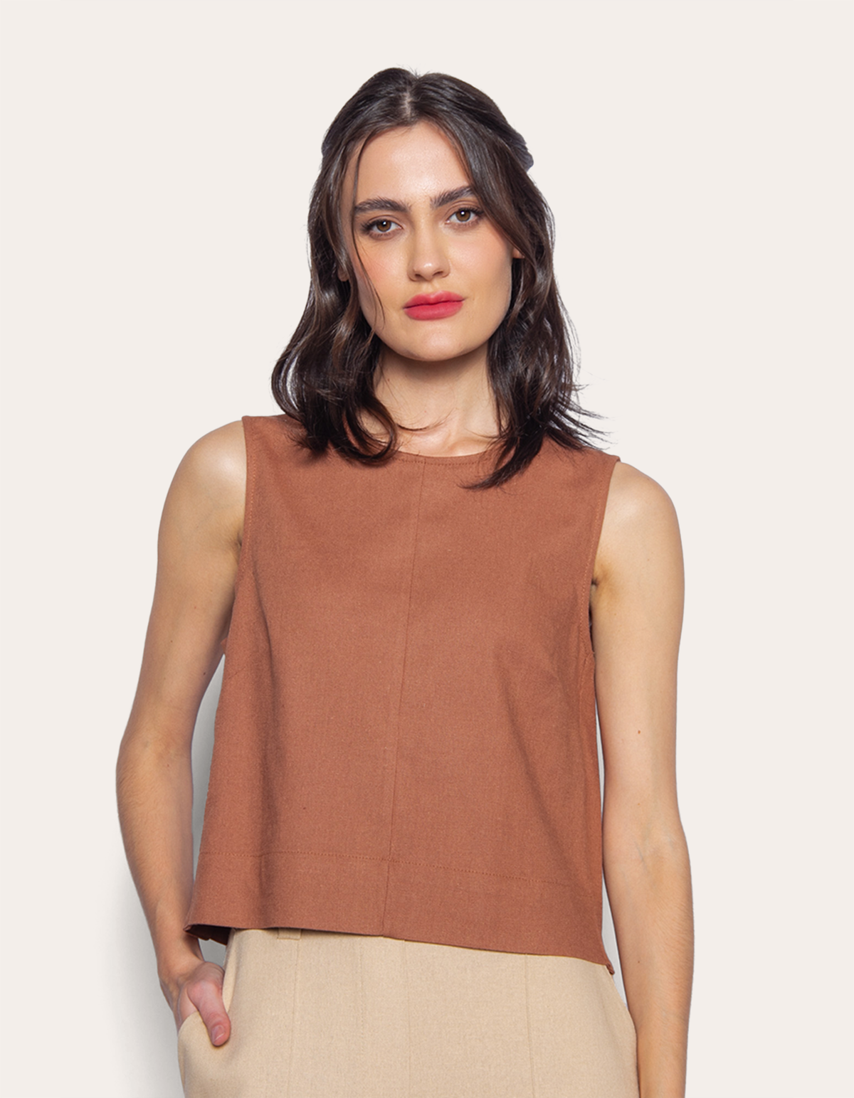 Blusa cropped cavada linho blend