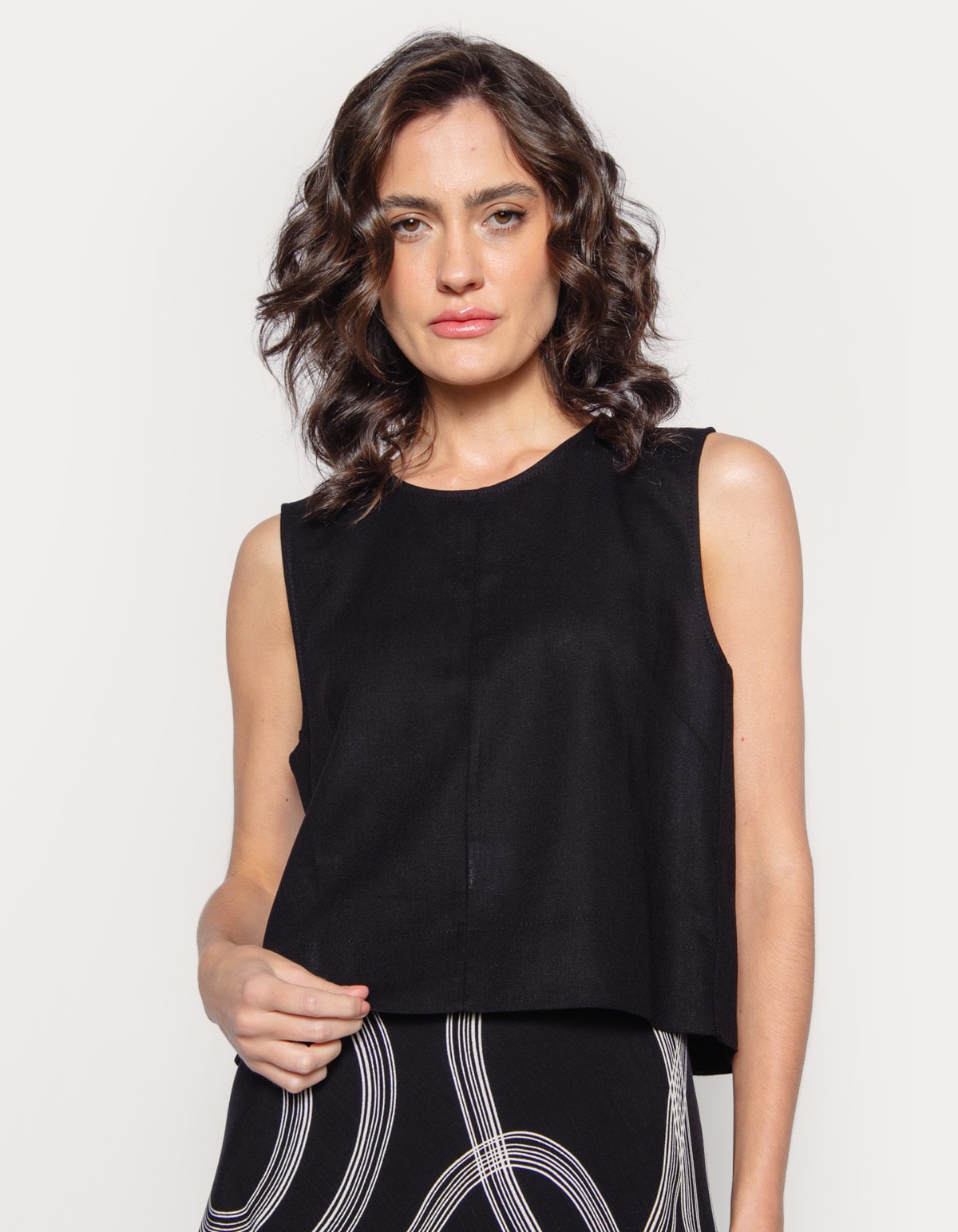 Blusa cropped cavada linho blend