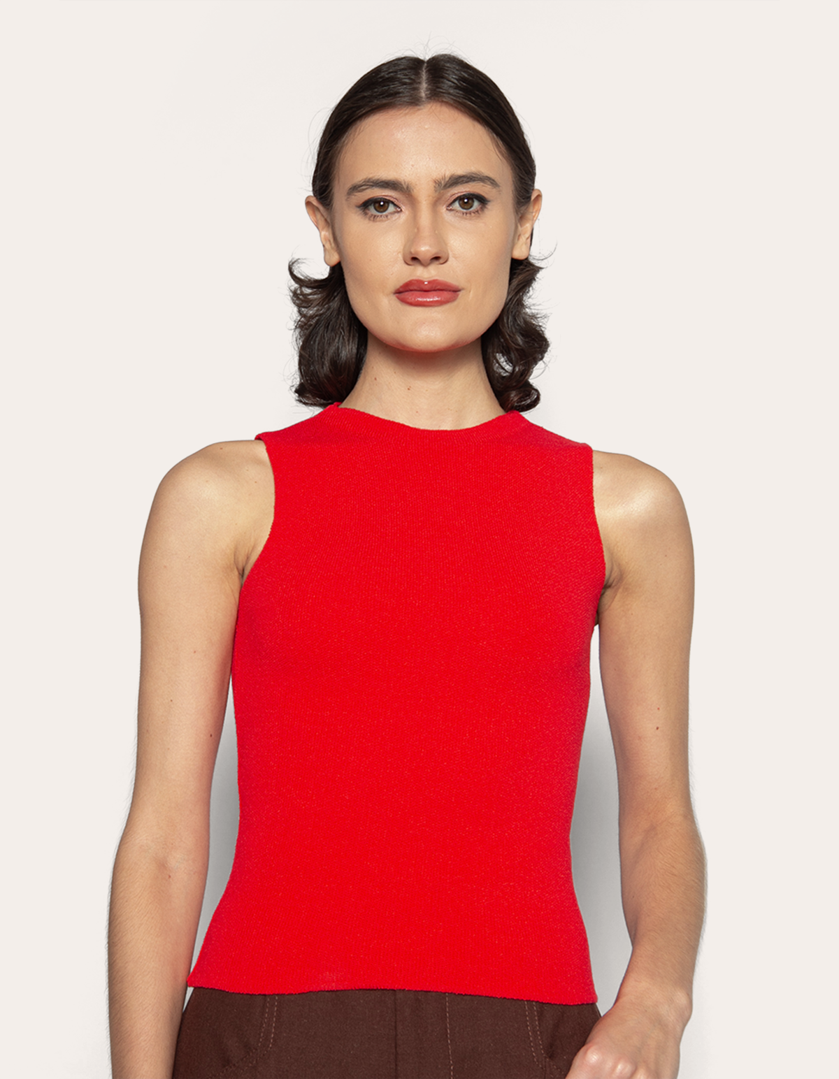 Apresentamos a blusa cropped cavada com golinha em tricot, uma peça que combina gola delicada e cavas amplas para equilibrar sofisticação e descontração. com modelagem reta e caimento justo, esta blusa destaca os ombros no lugar e oferece versatilidade no vestuário. sendo a favorita do guarda-roupa, transita entre looks casuais e elaborados, expressando estilo único e autêntico.