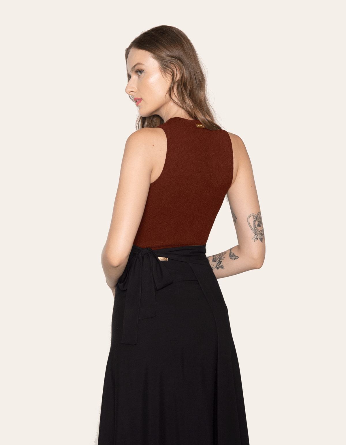 Apresentamos a blusa cropped cavada com golinha em tricot, uma peça que combina gola delicada e cavas amplas para equilibrar sofisticação e descontração. com modelagem reta e caimento justo, esta blusa destaca os ombros no lugar e oferece versatilidade no vestuário. sendo a favorita do guarda-roupa, transita entre looks casuais e elaborados, expressando estilo único e autêntico.