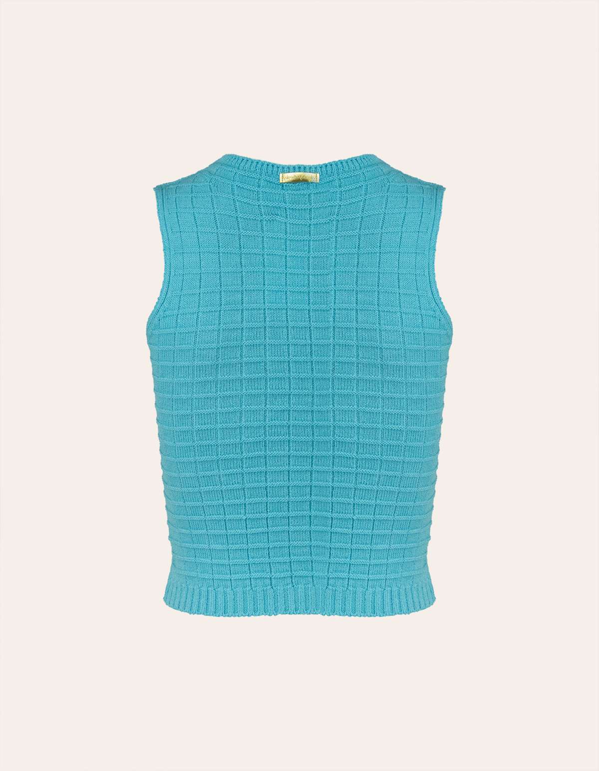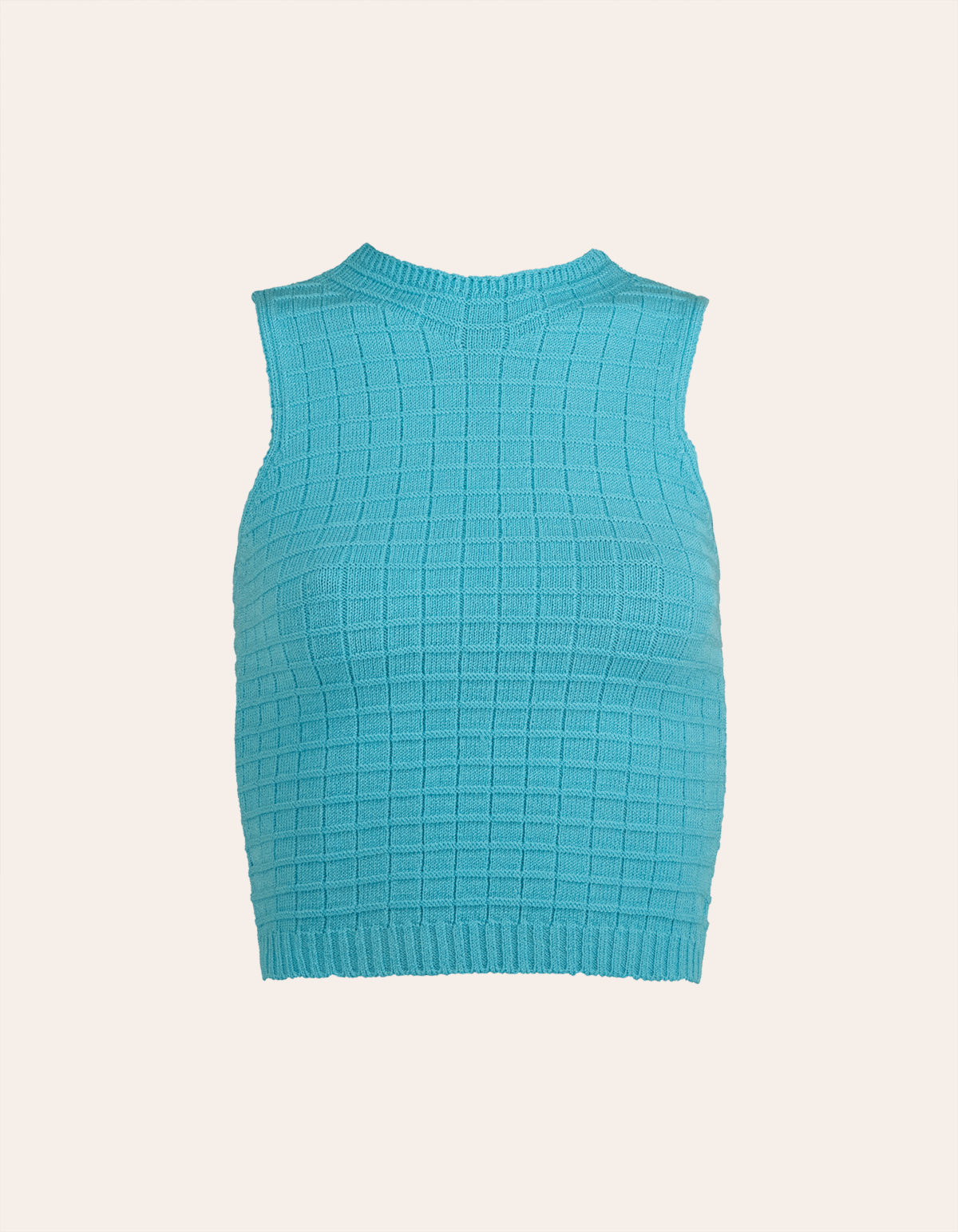 Blusa cropped tricot cavada, com golinha média, e tramas quadriculadas desenhadas. totalmente confortável e atual. perfeito para looks versáteis.