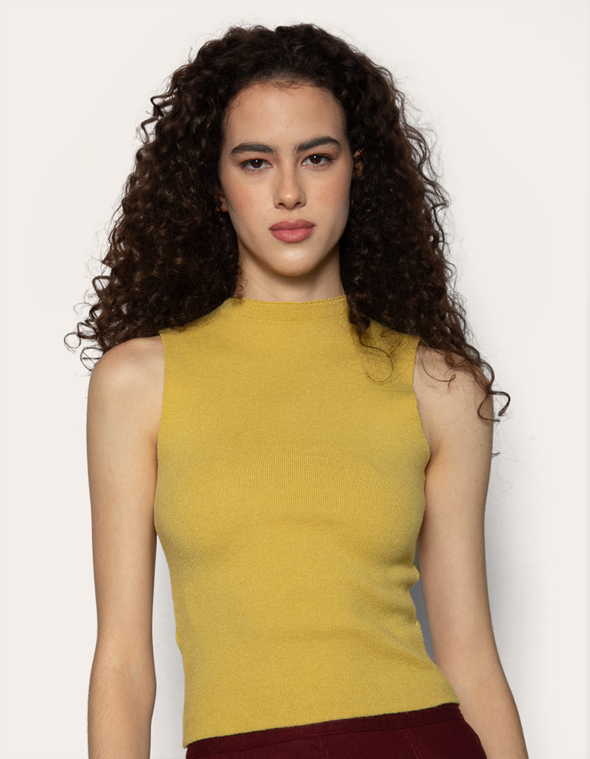 Apresentamos a blusa cropped cavada com golinha em tricot estampado, uma peça que combina gola delicada e cavas amplas para equilibrar sofisticação e descontração. com modelagem reta e caimento justo, esta blusa destaca os ombros no lugar e oferece versatilidade no vestuário. sendo a favorita do guarda-roupa, transita entre looks casuais e elaborados, expressando estilo único e autêntico.