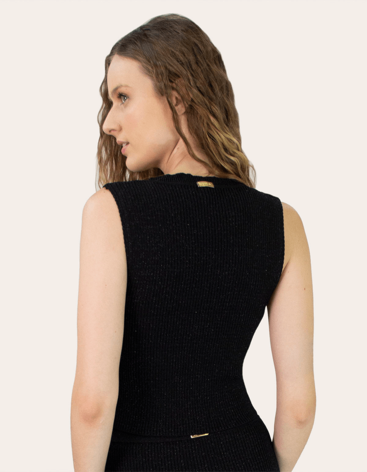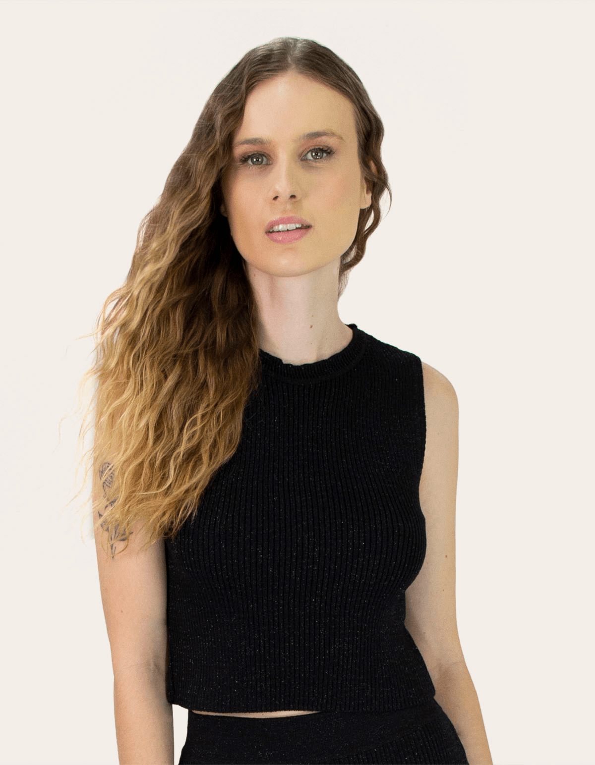 Blusa cropped cavada, golinha redonda em tricot lurex. aposte no cropped de lurex, pois o modelo vai valorizar ainda mais o seu corpo. combine a peça com shorts, saias ou calças, para arrasar no look!