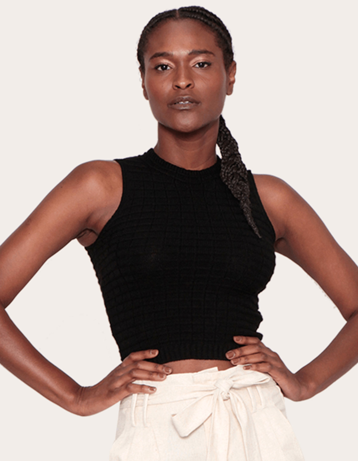 Blusa cropped cavada tricot Preto