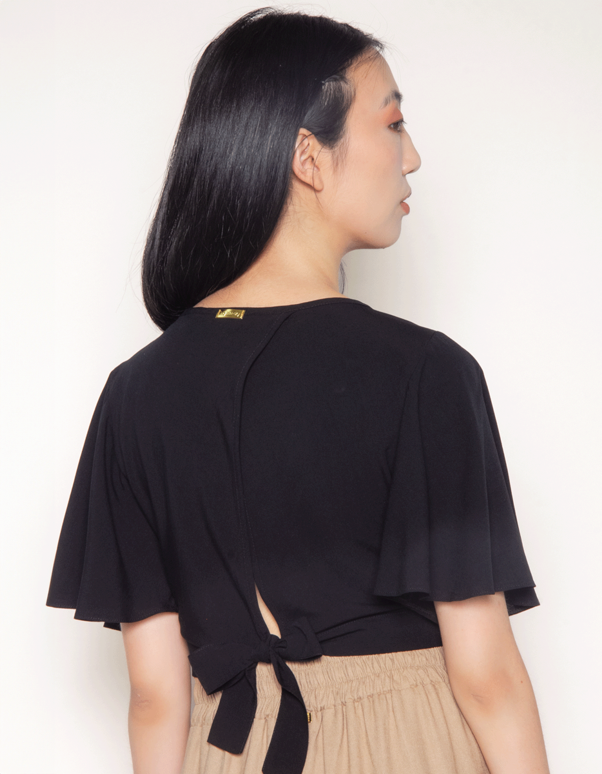 Blusa cropped com mangas curtas estilo godê, essa peça possui um ajuste na frente que permite franzir o tecido, criando um detalhe encantador. nas costas, há um vazado que adiciona um toque de ousadia ao visual, e uma amarração que acrescenta um elemento charmoso e ajustável. é uma opção estilosa e marcante para compor looks únicos e cheios de personalidade.