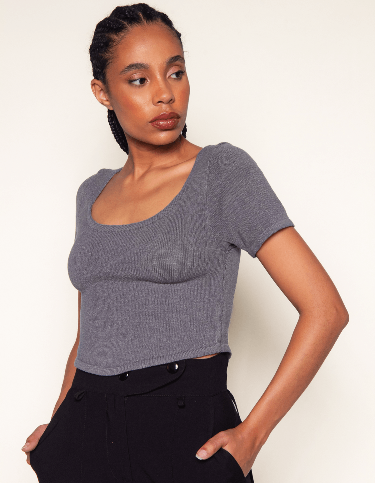 Blusa cropped corselet manga curta. dê um toque de sofisticação na sua produção.