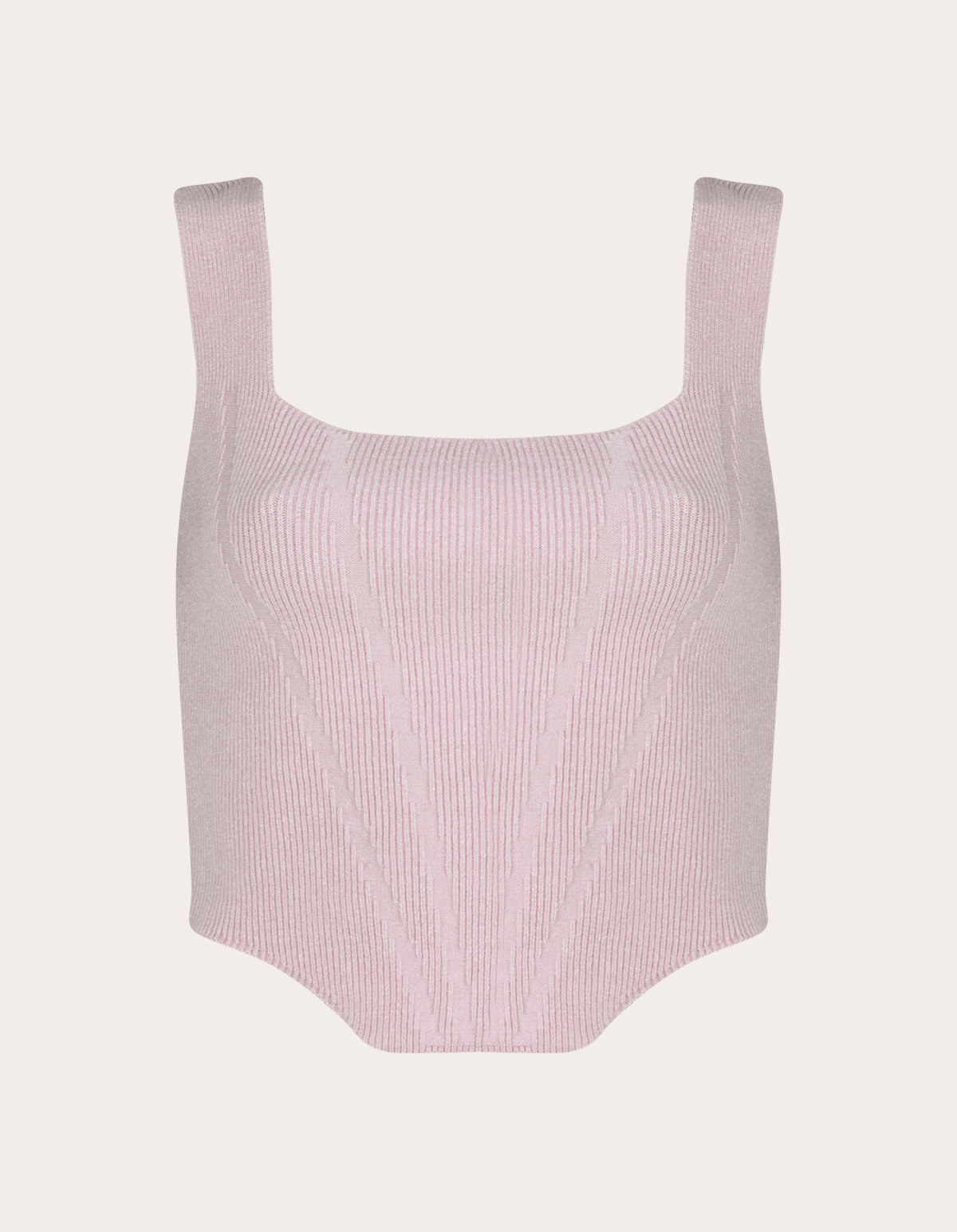 Blusa cropped em tricot modal, com decote quadrado, alças mais grossas, estilo corset e detalhes na trama. dê um toque de sofisticação na sua produção.