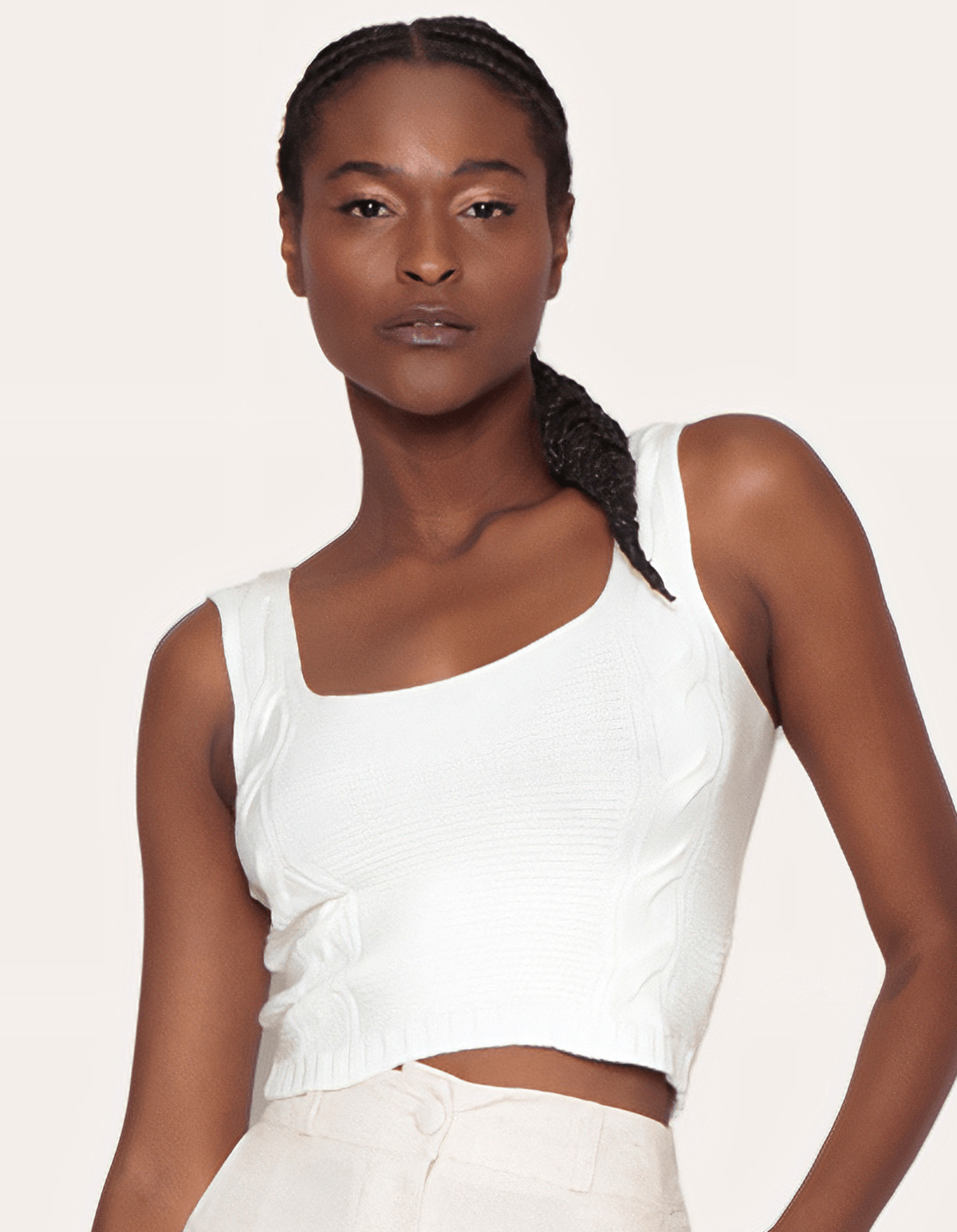 Blusa cropped tricot trança, alças médias e fit estilo corselet. fica um charme!!