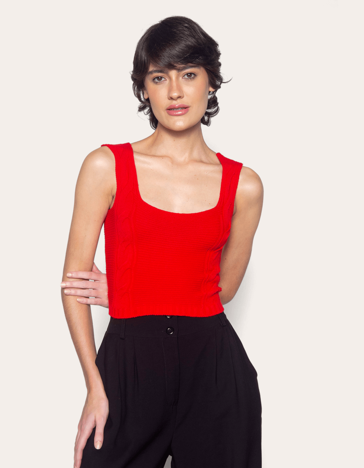 Blusa cropped tricot trança, alças médias e fit estilo corselet. fica um charme!!