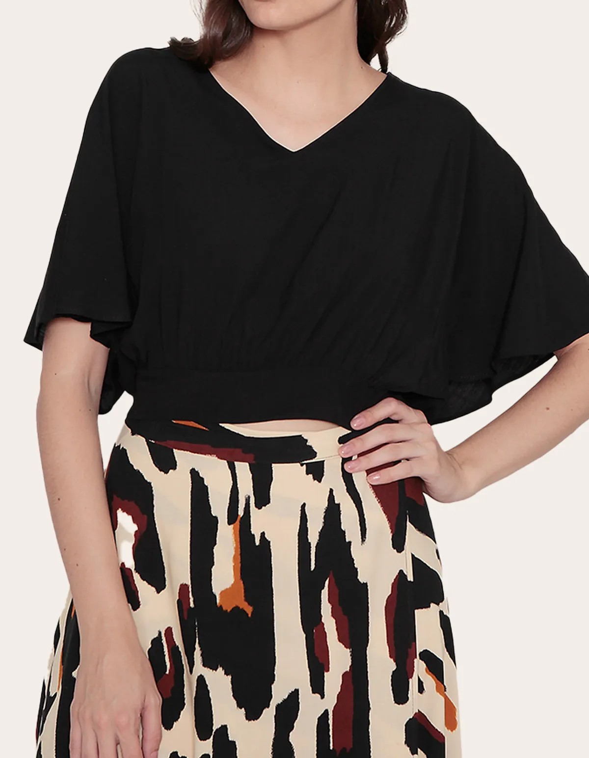 Apresentamos uma blusa cropped de estilo minimalista, com detalhes elegantes. esta peça possui mangas amplas que adicionam um toque de fluidez ao visual, oferecendo um equilíbrio entre conforto e sofisticação. o decote em v valoriza o colo de forma sutil e elegante, criando uma silhueta alongada. sua simplicidade permite uma versatilidade única, possibilitando combinações tanto para ocasiões casuais quanto para eventos mais formais. seja para ser usada com saias, calças ou shorts, esta blusa cropped lisa é uma adição versátil e elegante ao seu guarda-roupa.