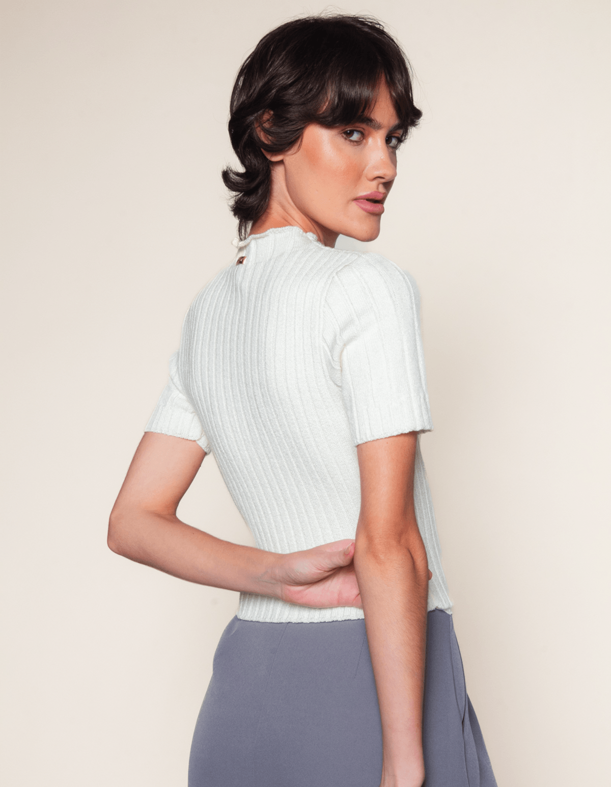 Esse cropped é super charmoso e com toque delicado, possui golinha e mangas curtas. para um look mais elegante use com calça alfaiataria e arrase nas reuniões de trabalho!
