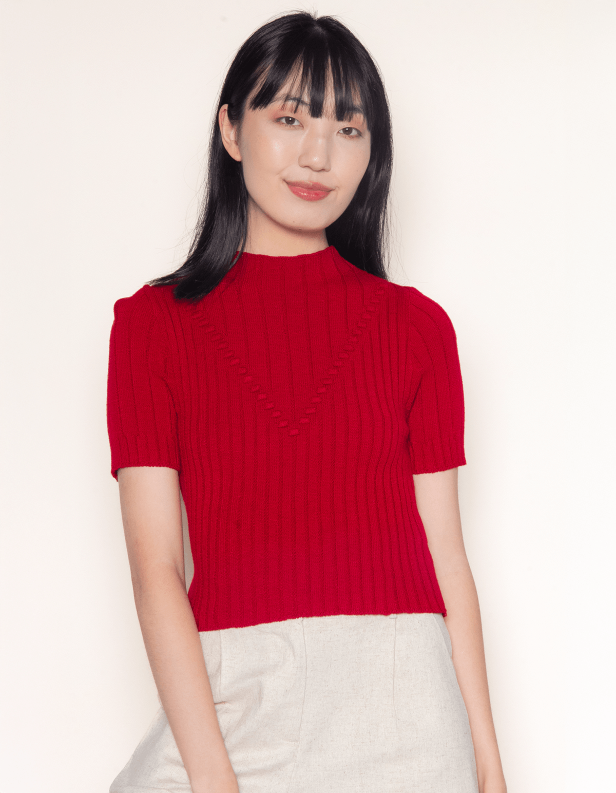 Blusa cropped manga curta tricot