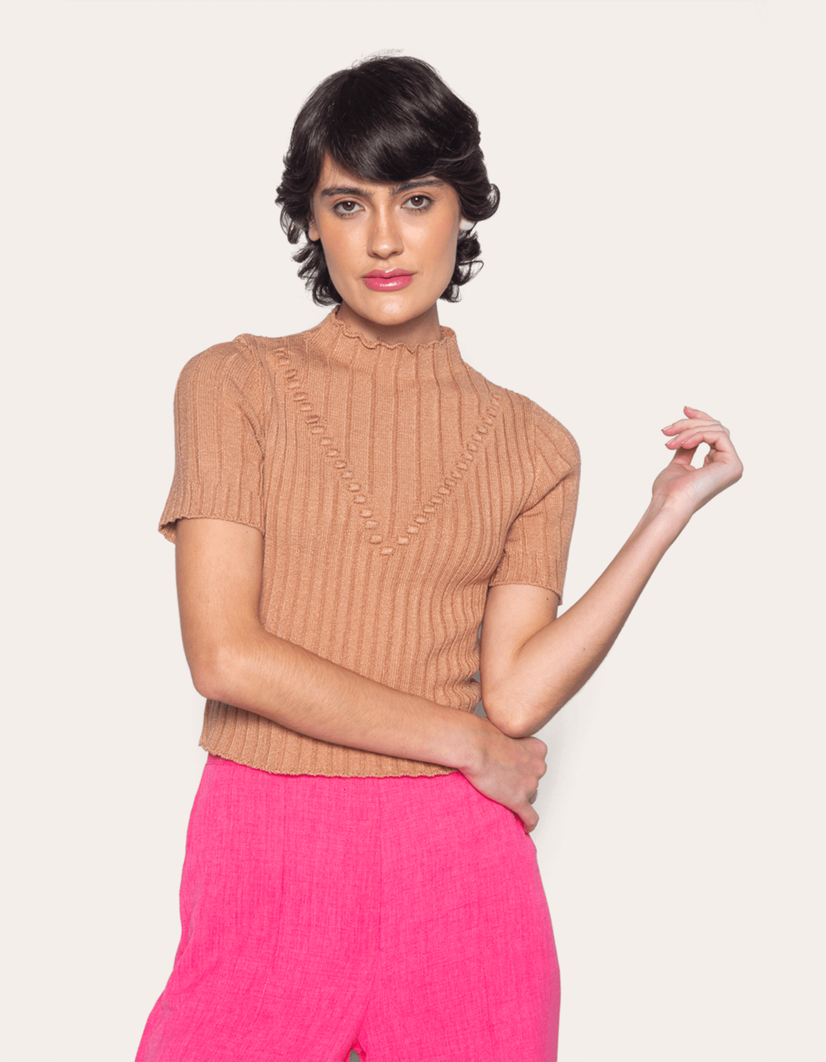 Esse cropped é super charmoso e com toque delicado, possui golinha e mangas curtas. para um look mais elegante use com calça alfaiataria e arrase nas reuniões de trabalho!