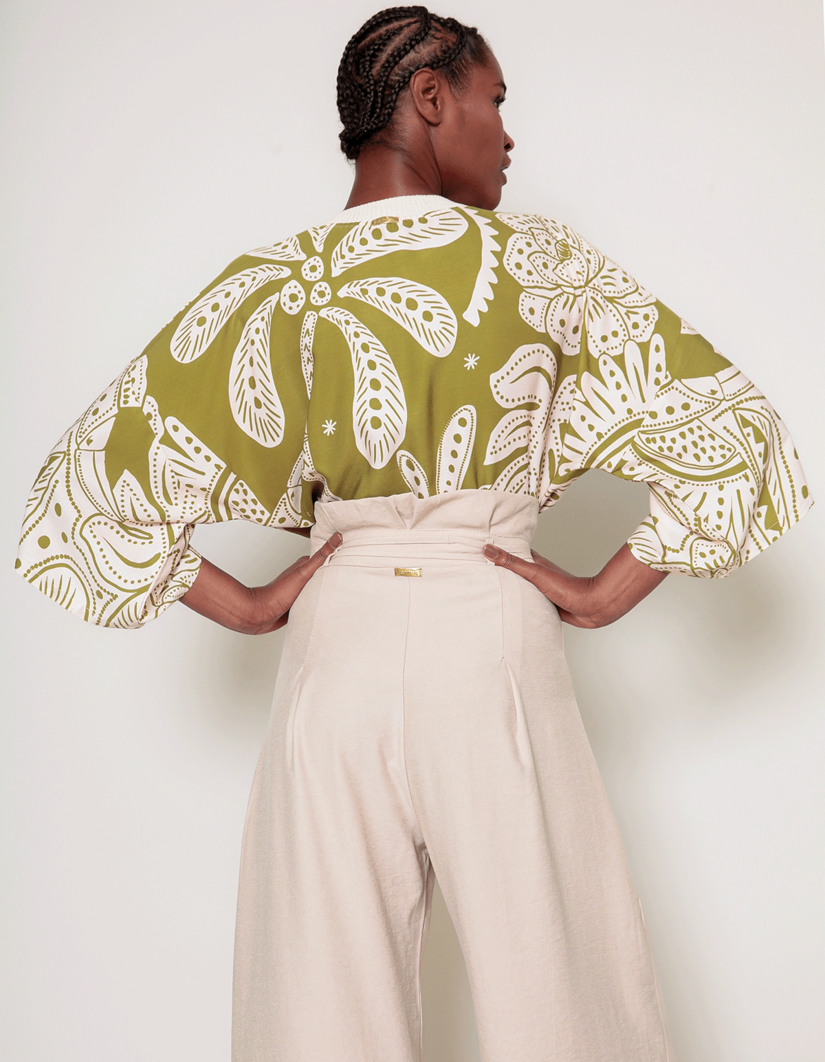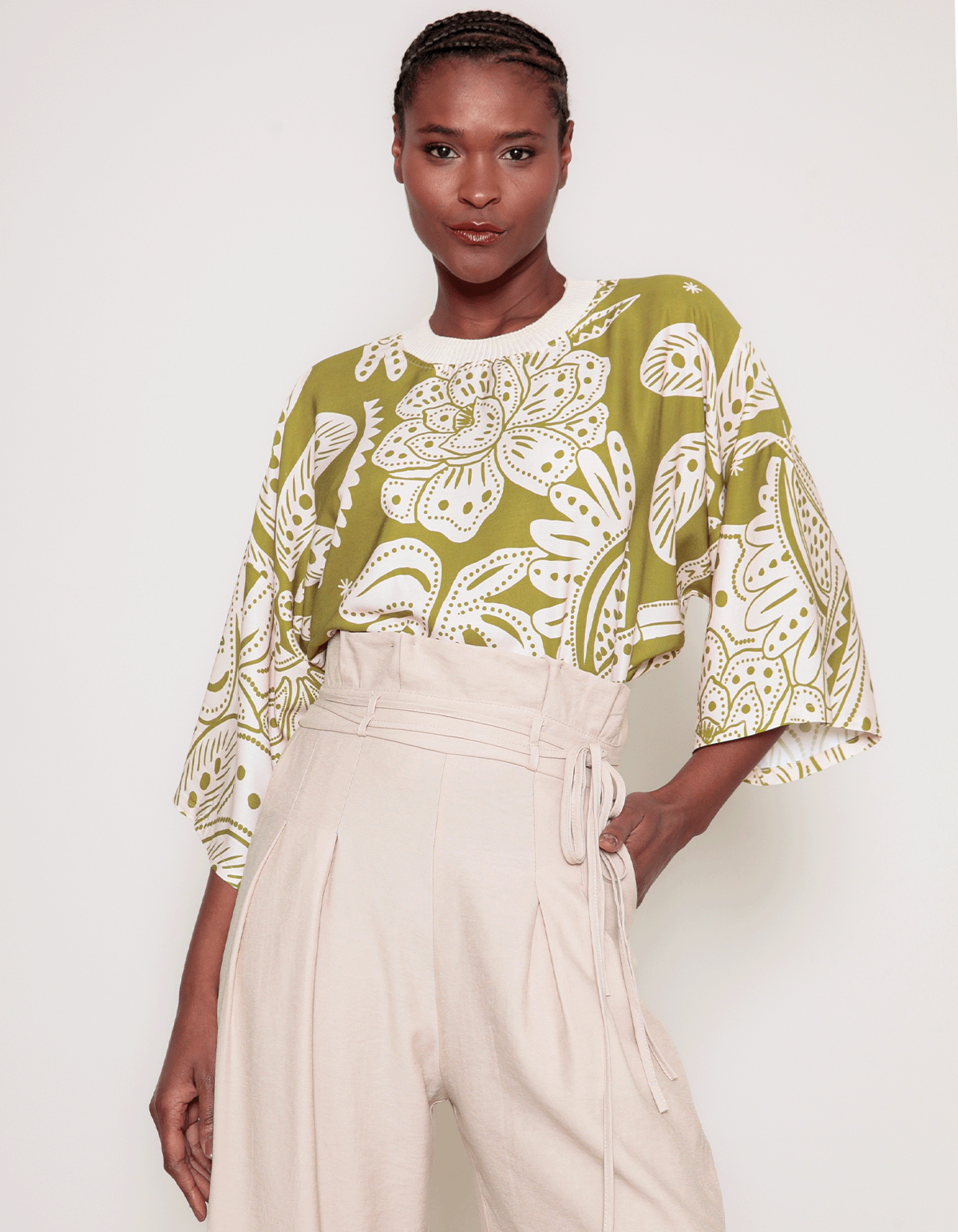 Blusa estampada comprimento cropped, mangas 3/4 godê, possui gola em tricot. perfeita apenas por sua modelagem, ideal para compor looks despojados e modernos, mas também por conta das várias maneiras de uso que ela te oferece! é aquela peça que você vai ter no guarda roupa e vai fazer com que as possibilidades de looks se multipliquem e por ser em tecido leve e soltinho, poderá explorar ainda mais a sua peça.