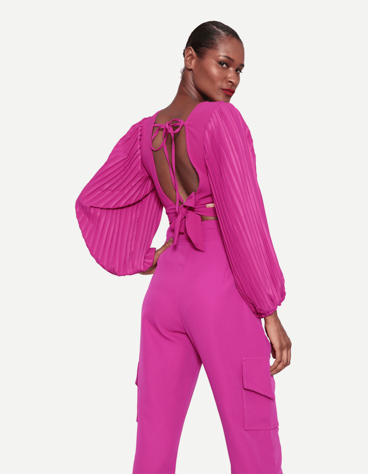 Apresentamos uma blusa cropped de manga longa plissada, confeccionada em tecido leve com toque macio. com decote redondo e detalhes de amarração nas costas, essa peça combina conforto e estilo. possui mangas longas plissadas com elástico no punho, proporcionando um ajuste confortável. além disso, conta com bojo para valorizar o busto. versátil para diversas ocasiões, essa blusa é uma escolha elegante e moderna para compor looks encantadores.