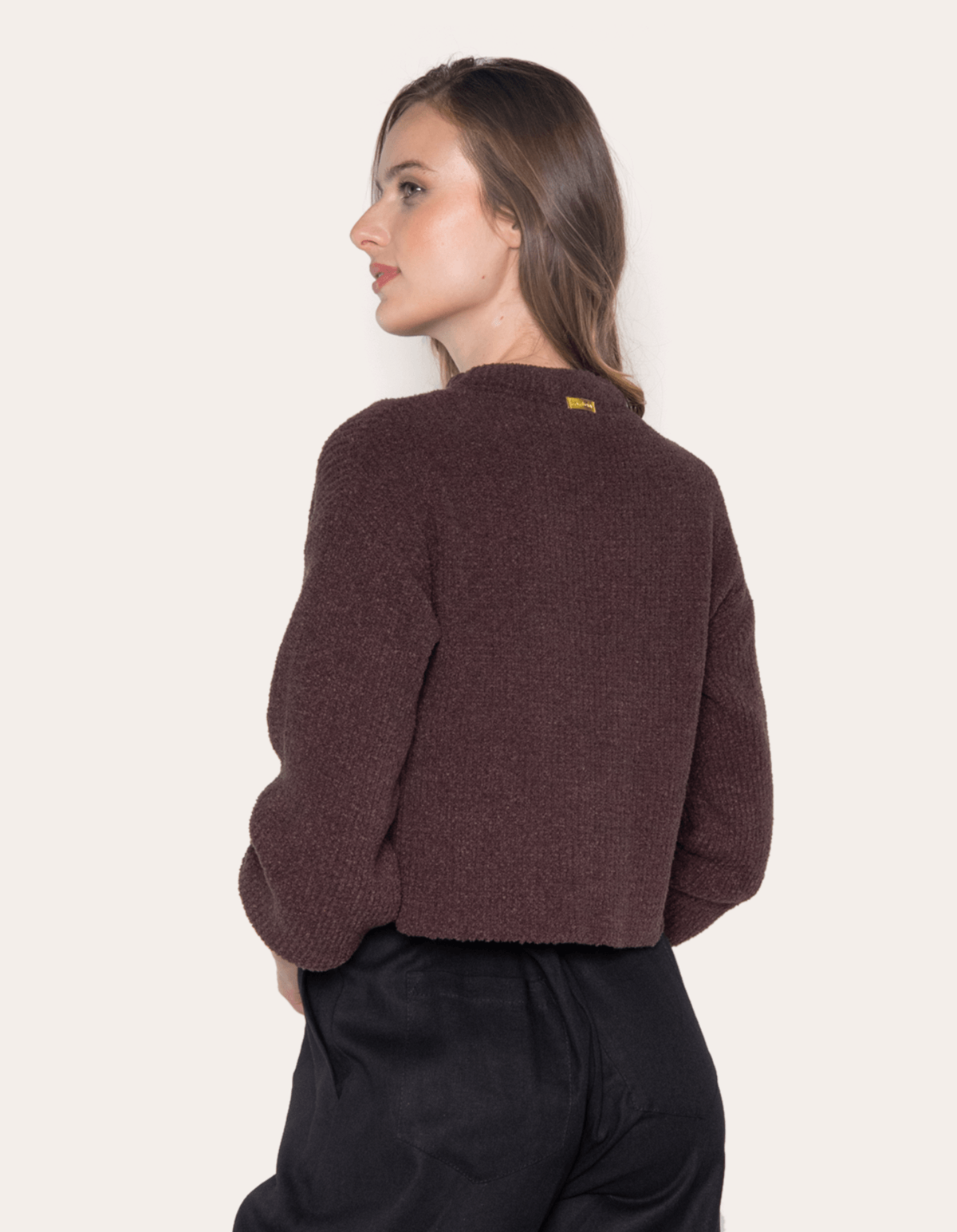 Blusa cropped manga longa tricot