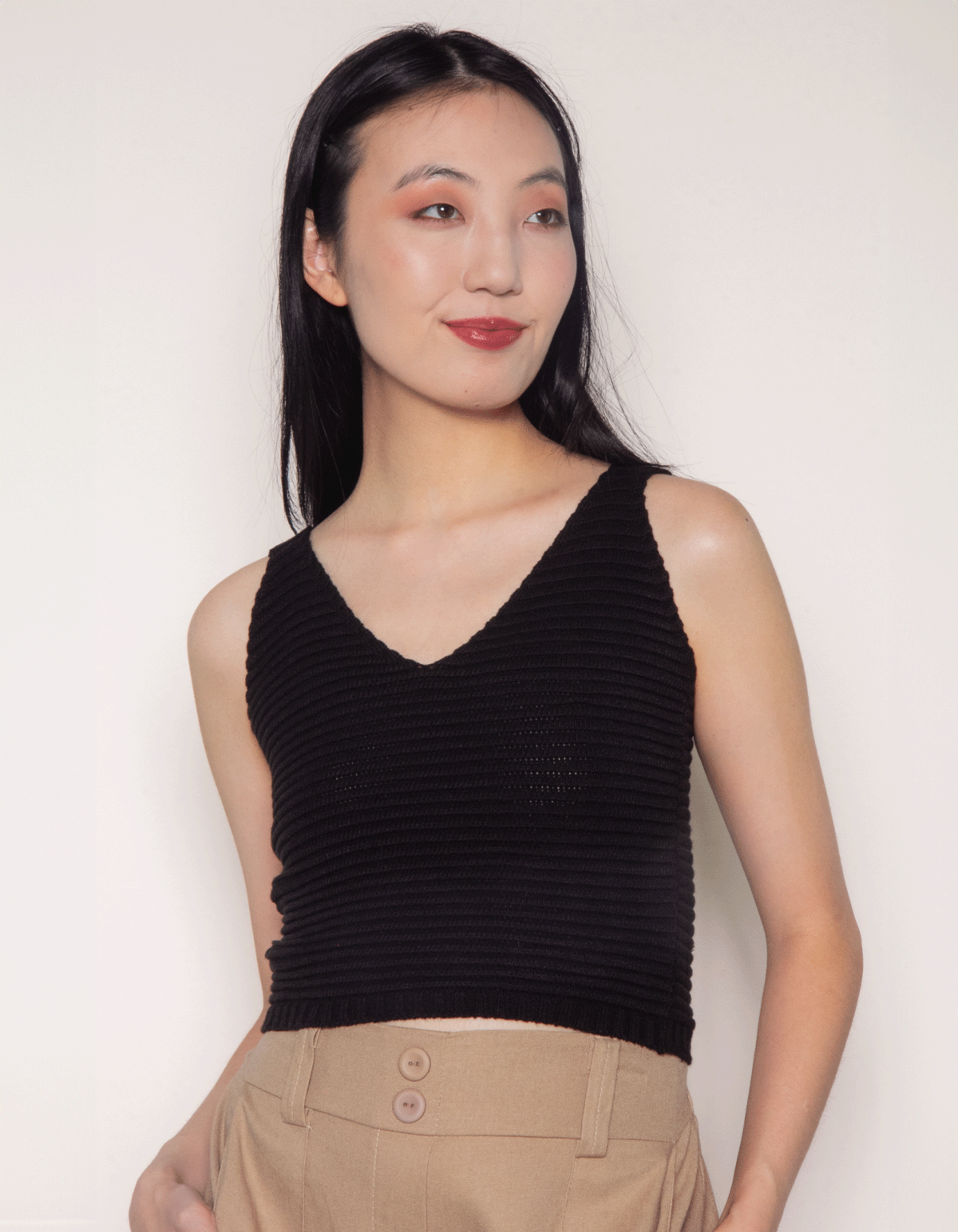 Blusa cropped tricot nervuras com alça média e decote v. minimalista e elegante, é perfeita para todas as ocasiões, possui ótimo caimento, permite diversos acessórios e combina tanto com complementos neutros, quanto estampados.