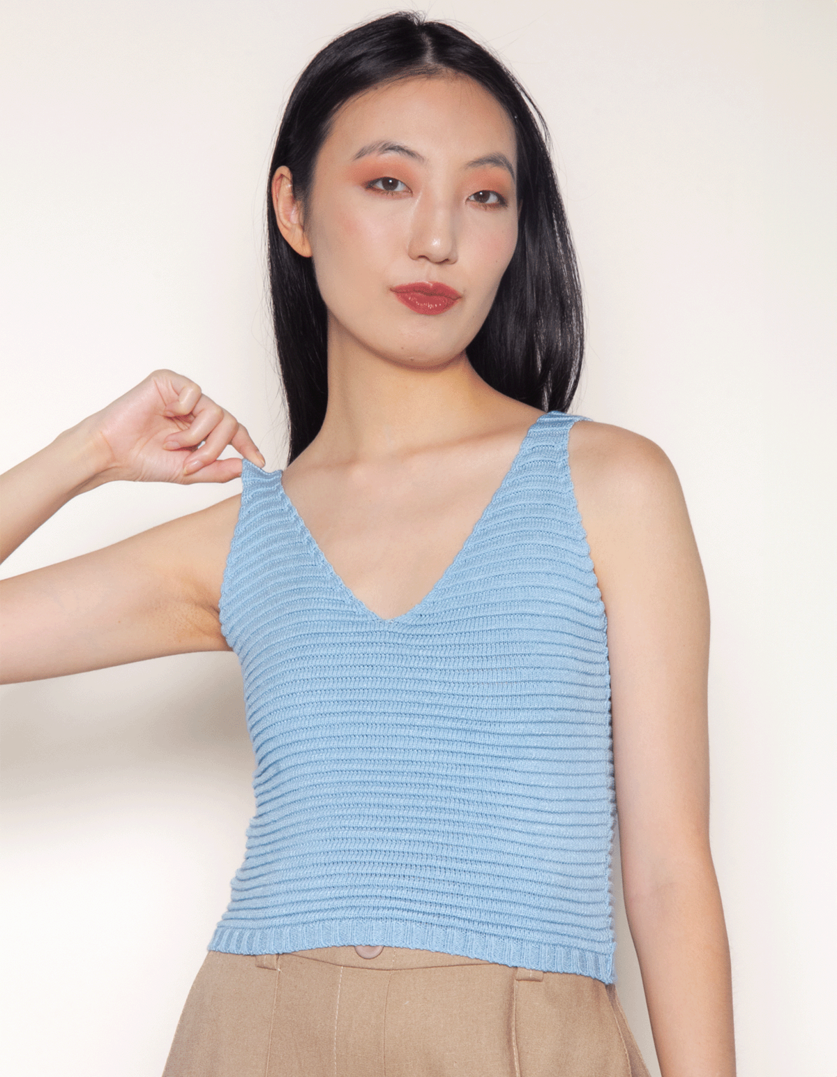 Blusa cropped tricot nervuras com alça média e decote v. minimalista e elegante, é perfeita para todas as ocasiões, possui ótimo caimento, permite diversos acessórios e combina tanto com complementos neutros, quanto estampados.