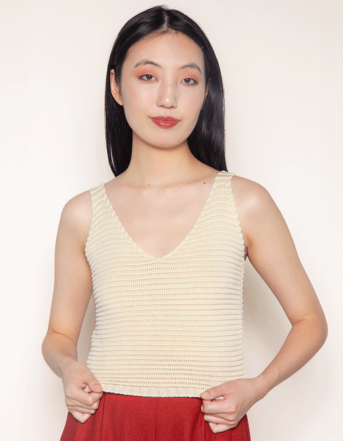 Blusa cropped tricot nervuras com alça média e decote v. minimalista e elegante, é perfeita para todas as ocasiões, possui ótimo caimento, permite diversos acessórios e combina tanto com complementos neutros, quanto estampados.