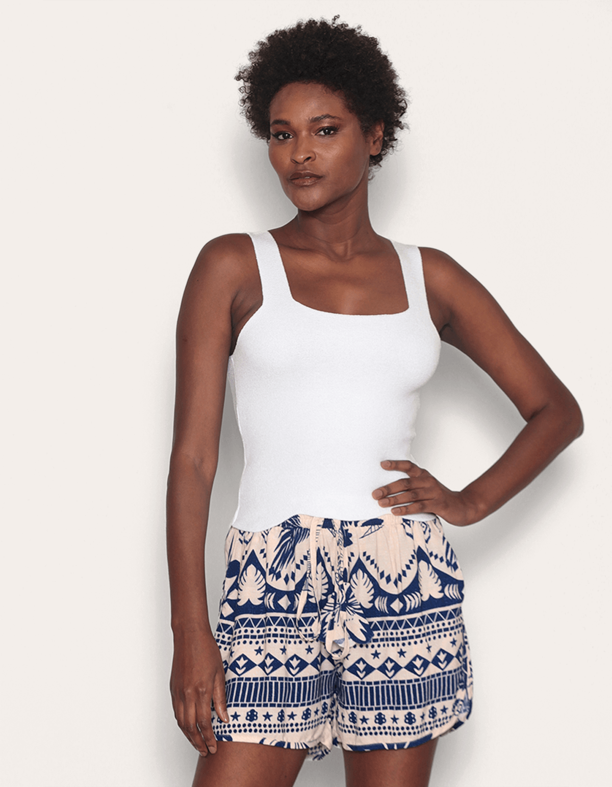 Blusa cropped tricot, decote reto, alças largas e barra com recortes nuvem. peça super em alta,versátil de usar e perfeita para fazer várias composições.