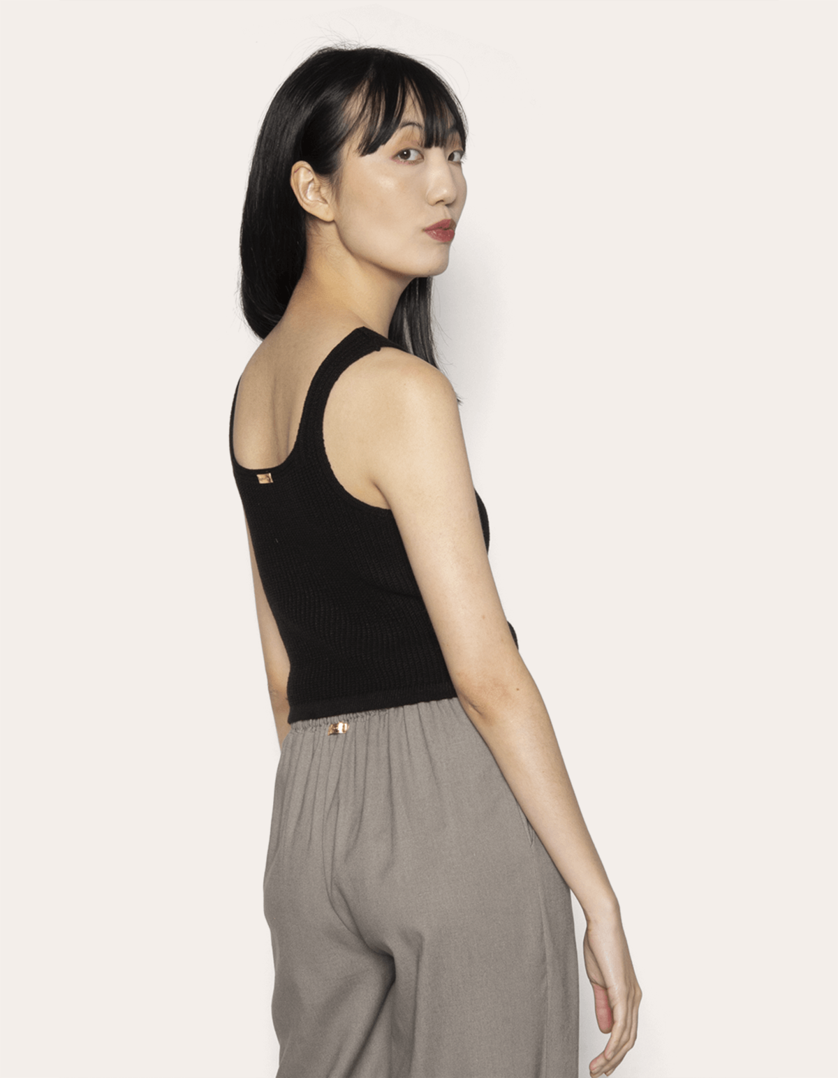 Blusa cropped tricot, decote reto, alças médias. uma peça que deixa o estilo alinhado, sofisticado e perfeito para ser arrematado por partes de baixo acinturadas.