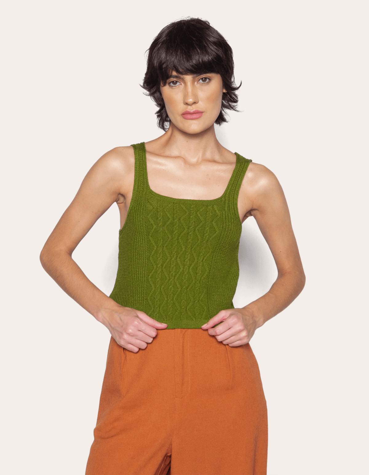 Blusa cropped tricot, decote reto, alças médias. uma peça que deixa o estilo alinhado, sofisticado e perfeito para ser arrematado por partes de baixo acinturadas.