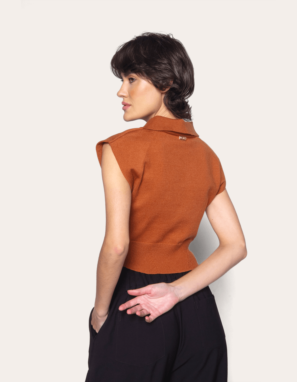 Blusa cropped tricot com gola polo, seu design sem mangas torna uma opção ideal para os dias mais quentes, mantendo o estilo e a elegância. a combinação do tricot com a gola polo faz desta blusa uma peça versátil, que pode ser facilmente combinada com calças, saias ou shorts para diferentes ocasiões.