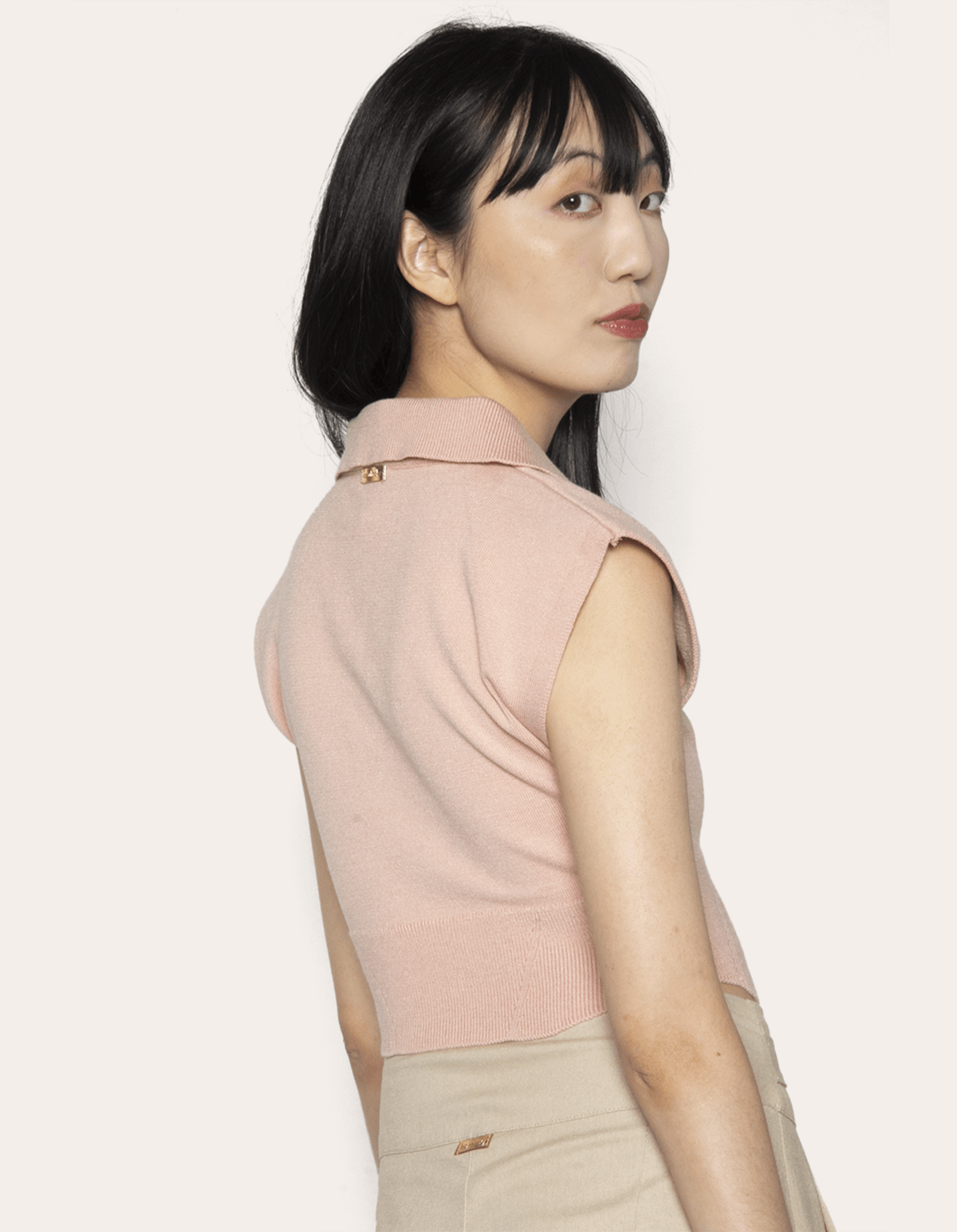 Blusa cropped tricot com gola polo, seu design sem mangas torna uma opção ideal para os dias mais quentes, mantendo o estilo e a elegância. a combinação do tricot com a gola polo faz desta blusa uma peça versátil, que pode ser facilmente combinada com calças, saias ou shorts para diferentes ocasiões.