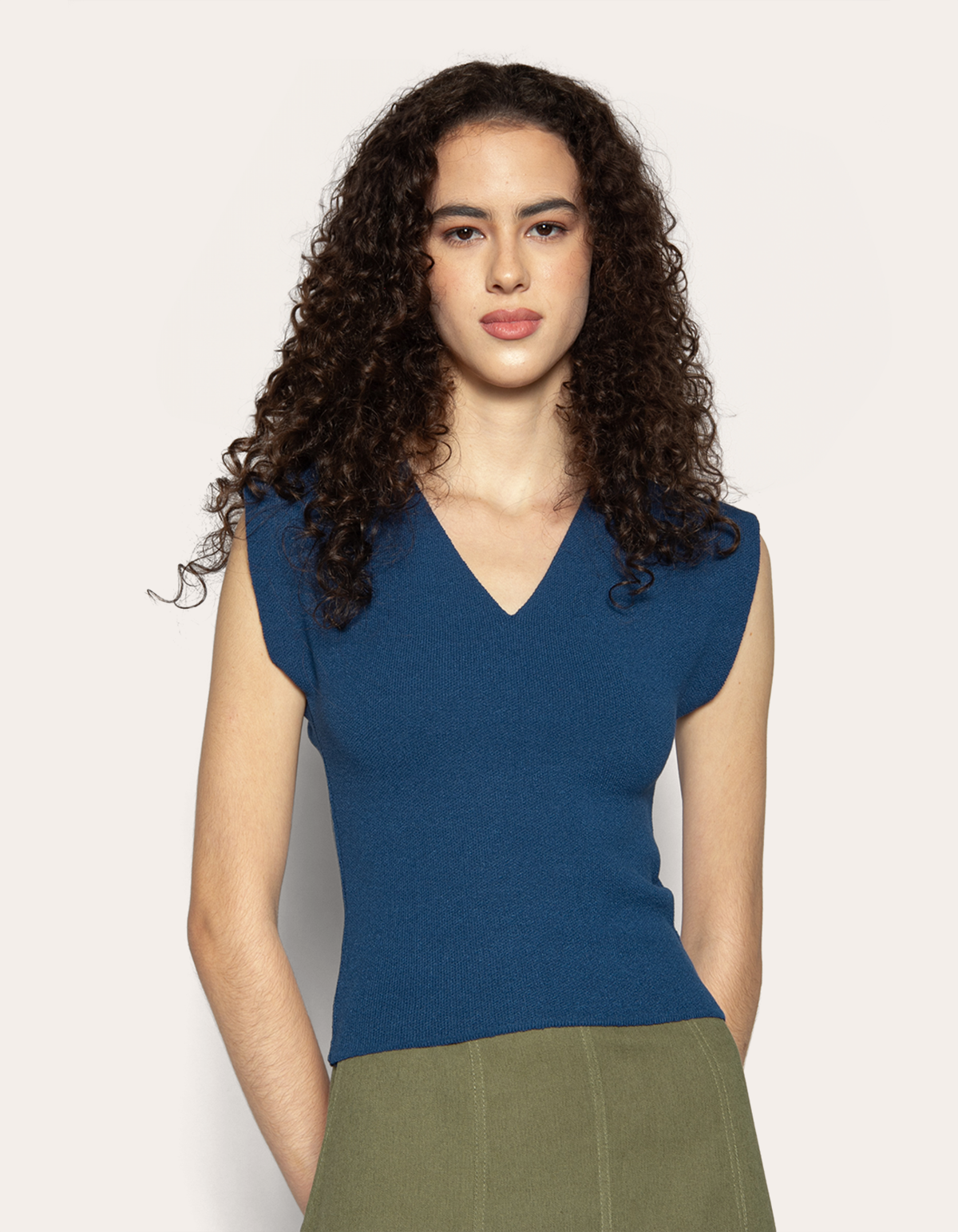 Blusa em tricot, decote v, sem manga com cava. básica essencial para os seus looks, essa blusa em adiciona elegância de um jeito prático, além de combinar muito bem com todos os estilos.
