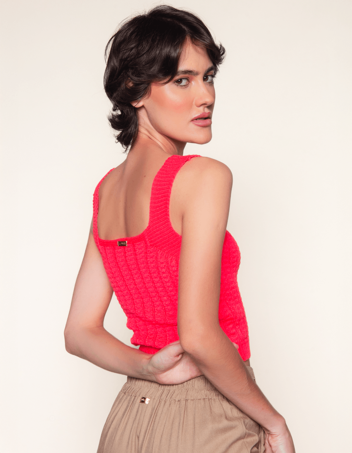 Top cropped tricot alça larga. versátil, pode ser combinada com diversas peças para criar looks modernos.