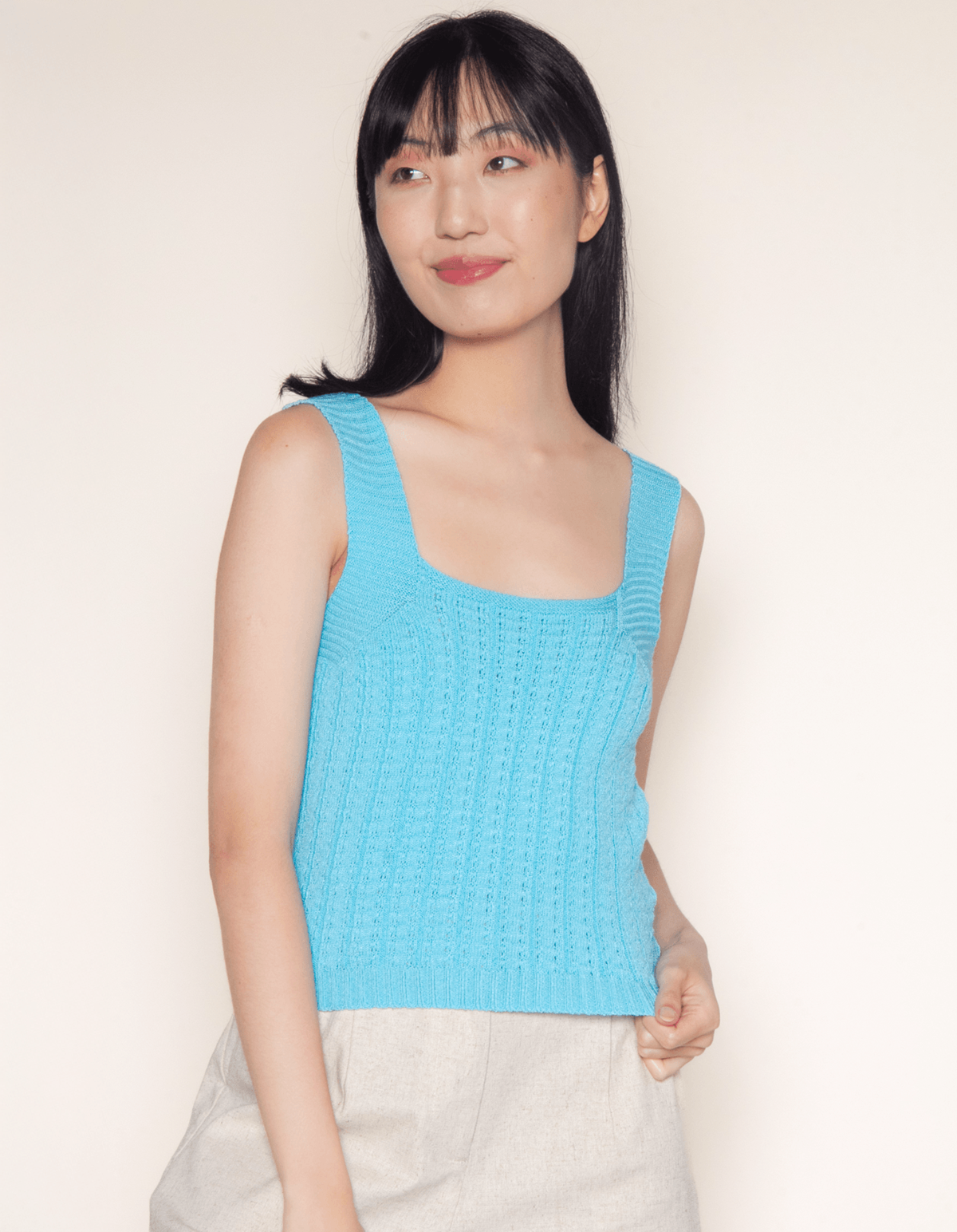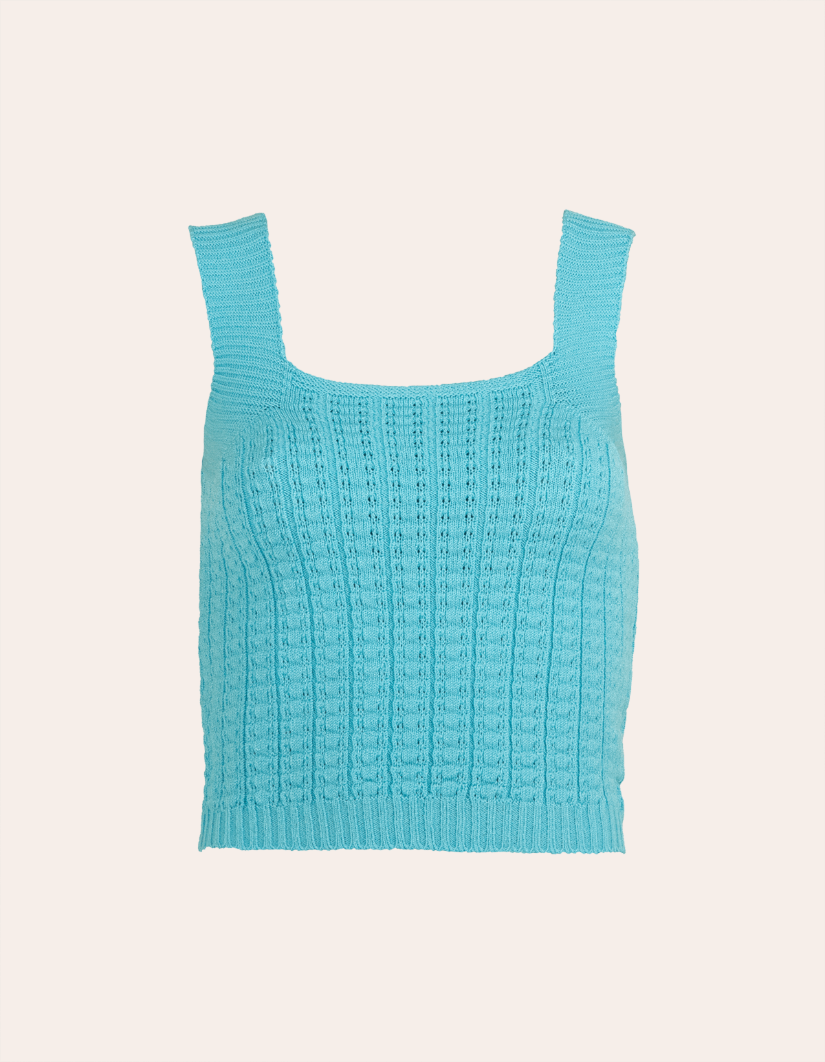 Top cropped tricot alça larga. versátil, pode ser combinada com diversas peças para criar looks modernos.
