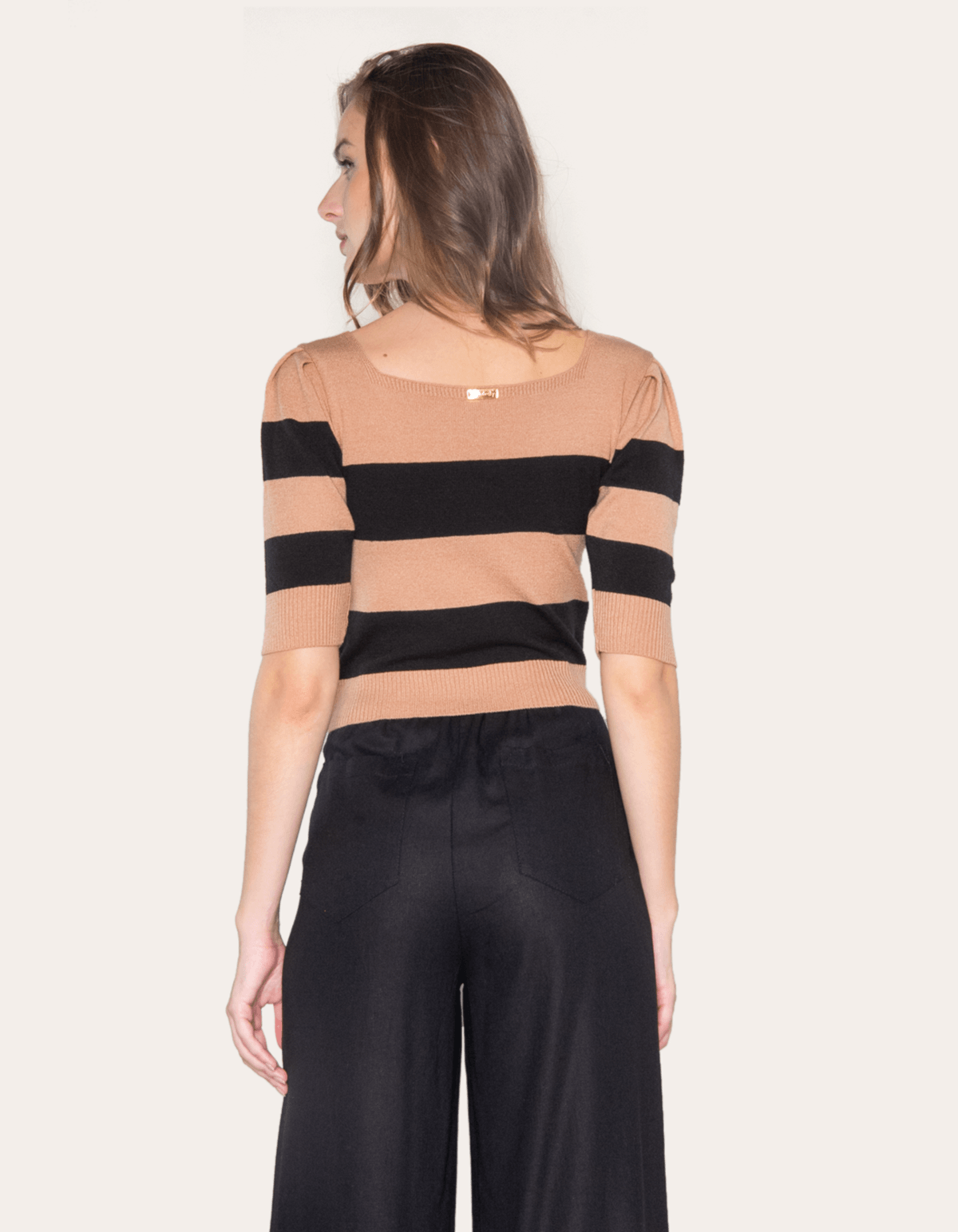 Blusa cropped tricot bicolor